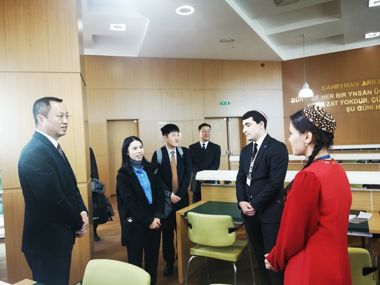 代表团参观图书馆并与土库曼斯坦学生亲切交谈