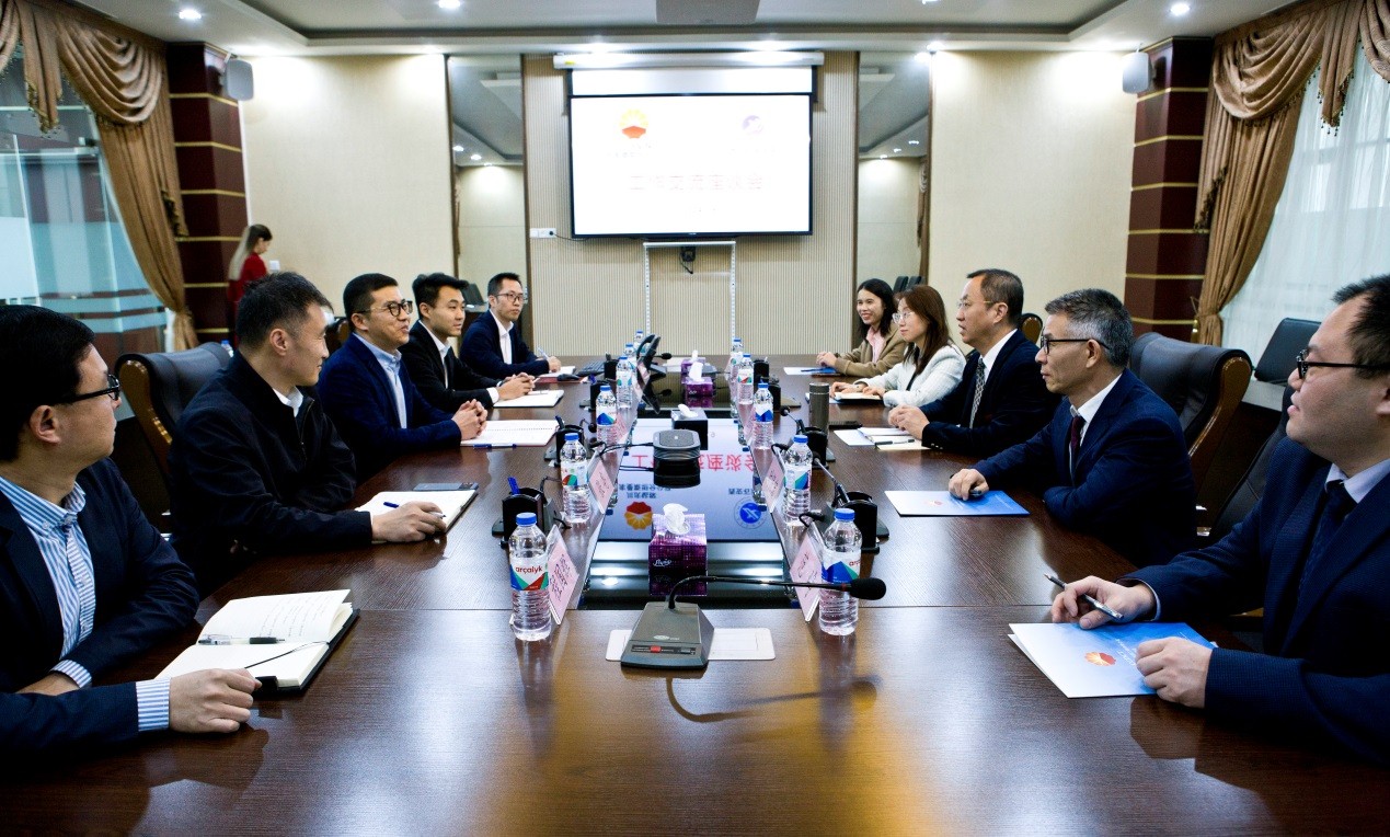 与卡卡耶夫国际油气大学校长阿塔马诺夫等负责人座谈