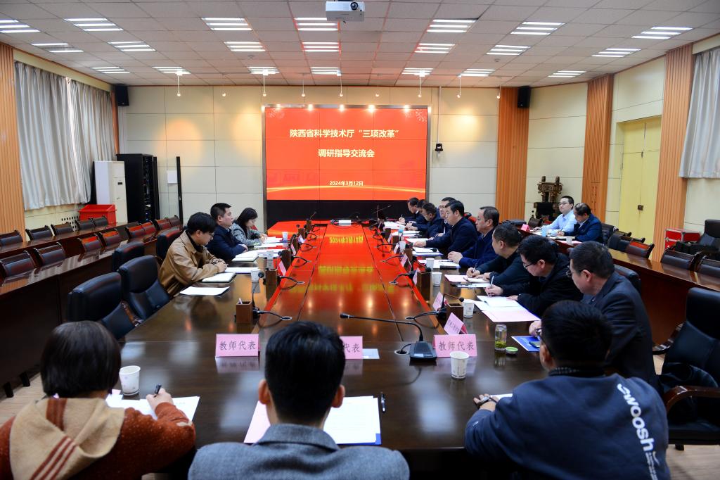 3月12日下午,陕西省科技厅副厅长王军来校调研科技成果转化“三项改革”工作进展情况。会议在雁塔校区会议中心第二会议室举行,beat365校长王进富出席会议,副校长张荣军主持会议。