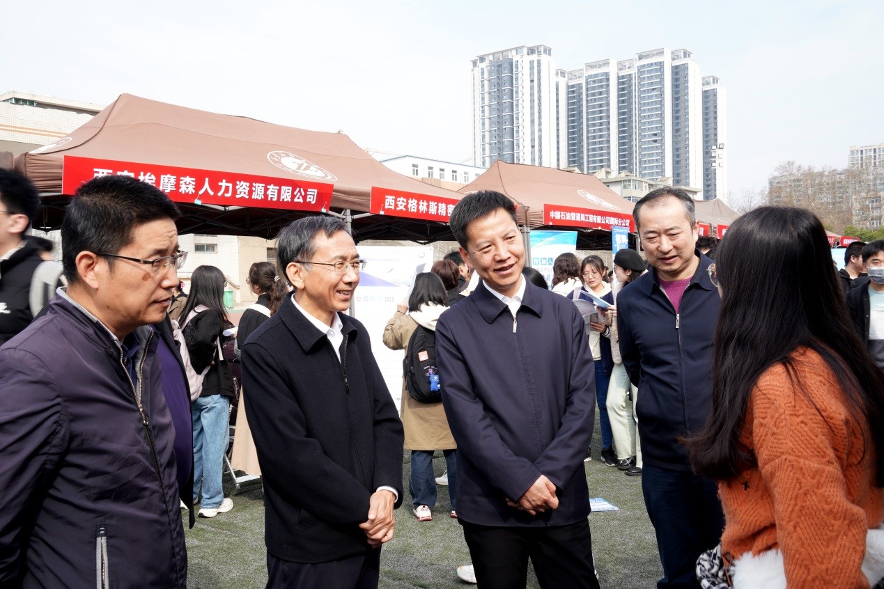 3月15日,由陕西省教育厅主办,陕西省学生就业与留学服务中心和beat365英国官方网站承办的陕西省2024届普通高校能源化工类毕业生春季联盟招聘会在beat365雁塔校区成功举办。省委教育工委委员、省教育厅副厅长申雪峰一行来校指导考察招聘工作。会前,申雪峰副厅长与beat365党委书记常江、党委副书记张木就2024届毕业生就业工作开展座谈交流。陕西省学生就业与留学服务中心、省教育厅学生处有关负责同志陪同考察。