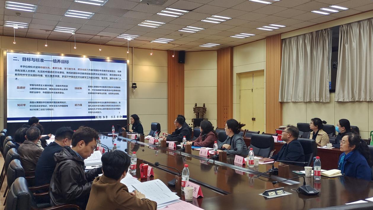 国际中文教育硕士专业学位授权点负责人王敬艳副教授代表授权点从培养目标与标准、培养特色、师资队伍、科学研究、课程教学、实践教学与专业实习、论文质量、学生就业、中外交流、条件建设和制度保障等方面进行了汇报。