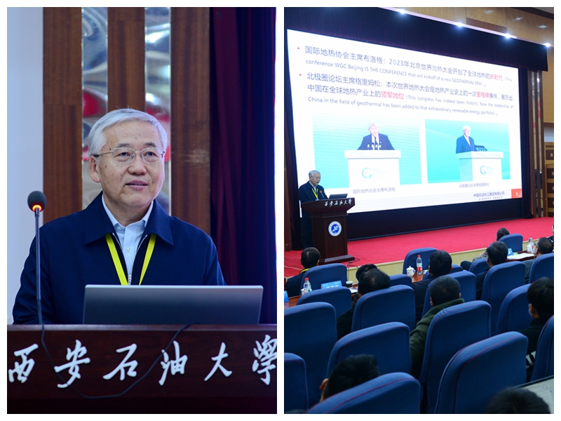 孙焕泉院士作了题为“地热资源开发技术与产业发展方向”的报告,介绍了全世界地热资源开发利用的重要意义、资源分类与分布以及浅层、中深层地热资源开发与利用和干热岩地热资源开发利用等现状;深入分析了我国地热资源类型多、差异大,资源富集机理和分布规律复杂,开发难度大等瓶颈问题,介绍了中国石化形成在中深层水热型地热资源开发中形成的“两项基础研究、六大核心技术”,并强调了通过推进油田变地热田,地热+矿产资源开发,“地热+”多能协同,地热与新能源融合发展等措施来实现地热资源的高效、可持续开发与规模化利用,最终推动我国新能源高质量发展。