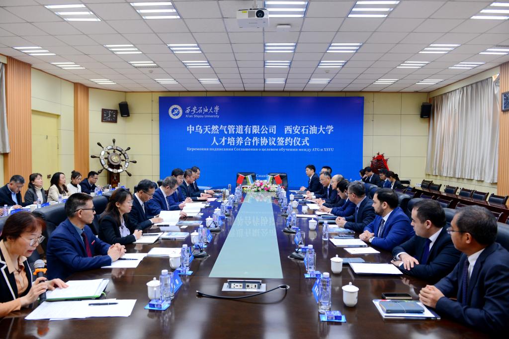 签约仪式上,常江代表学校向公司中外嘉宾一行来校考察、座谈表示热烈的欢迎。他指出,学校与中油国际管道公司联合实施的中塔、中吉人才培养校企合作项目,已经成为“一带一路”人才培养典型成果,项目的成功实施和创新的培养模式在中塔、中吉两国企业界、教育界引起广泛关注和赞誉。他表示,中乌天然气管道作为“中亚-中国”天然气管道的重要组成部分,是在中乌两国领导人亲自推动下实施的具有重大战略意义的宏伟工程,也是共建“一带一路”倡议下能源合作的优秀典范。学校衷心希望继续发挥自身优势和特色,为中乌能源领域合作提供人才支撑和智力支持,持续推进中乌人才培养、产学研等方面合作,产出更多硕果。