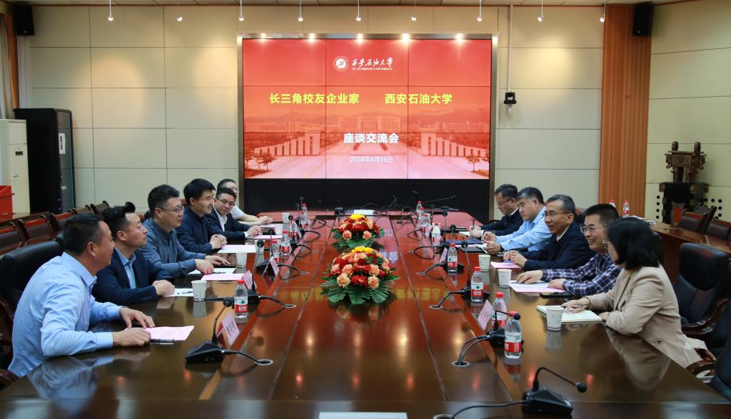 4月16日上午,长三角校友企业家代表返校进行校企合作交流。合作交流会在雁塔校区第二会议室召开,校党委副书记张木,南京南大数字科技有限责任公司总经理盛炜炜、无锡美瑞克阀门制造有限公司总经理孙海东、黄山华能石化机械有限公司董事长李杨、上海飞舟博源材料科技股份有限公司总经理丁学光(长三角校友会副会长)、金湖县支点石油科技有限责任公司总经理鲁延瑞 、苏州博睿测控设备有限公司副总经理华乐(长三角校友会秘书长)出席会议。校友工作与合作交流处处长覃彪主持会议。