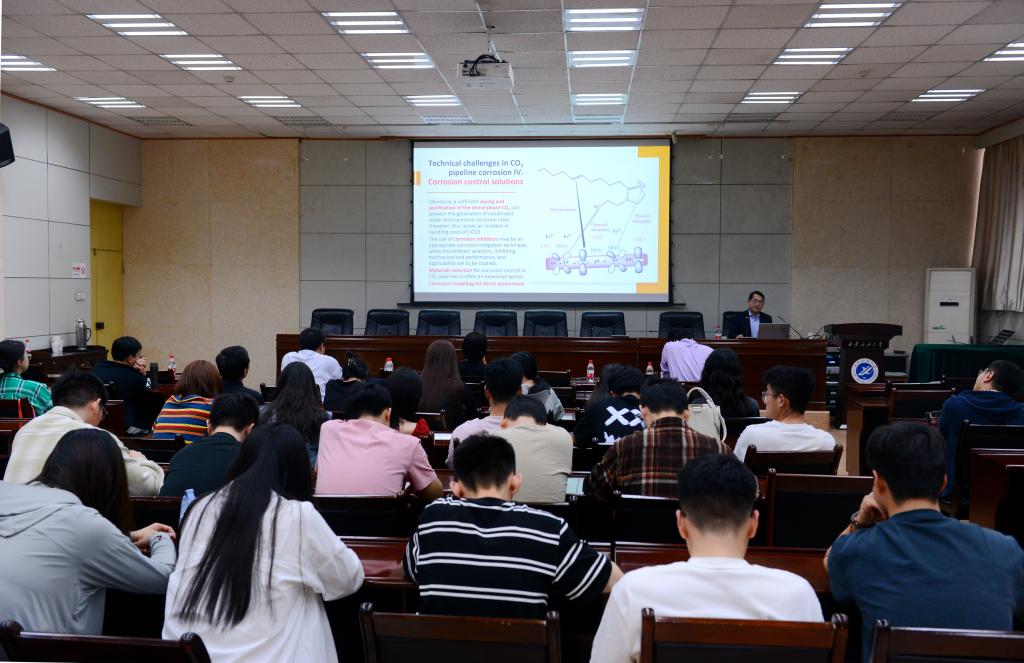 最后,程院士指出,目前国际能源工业在发展CCUS技术方面,投入大量人力物力并取得巨大进步,预计CCUS技术是在较长时期内平衡能源供应保障与能源转型的重要手段。但CCUS技术研发方面还存在很多不足,腐蚀是导致CO2管道失效的最重要原因。分享结束后,程院士与在场师生开展了积极的互动交流,详细地回答了师生提出的各种问题。