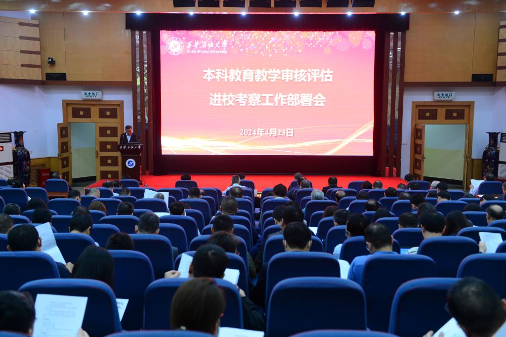 为做好2024年4月29日开始的本科教育教学审核评估进校评估考察工作,4月23日上午,学校在雁塔校区会议中心学术报告厅召开本科教育教学审核评估进校考察工作部署会。全体校领导,校本科教学督导组组长、副组长,全体处级干部参加了会议。会议由校党委副书记张木主持。