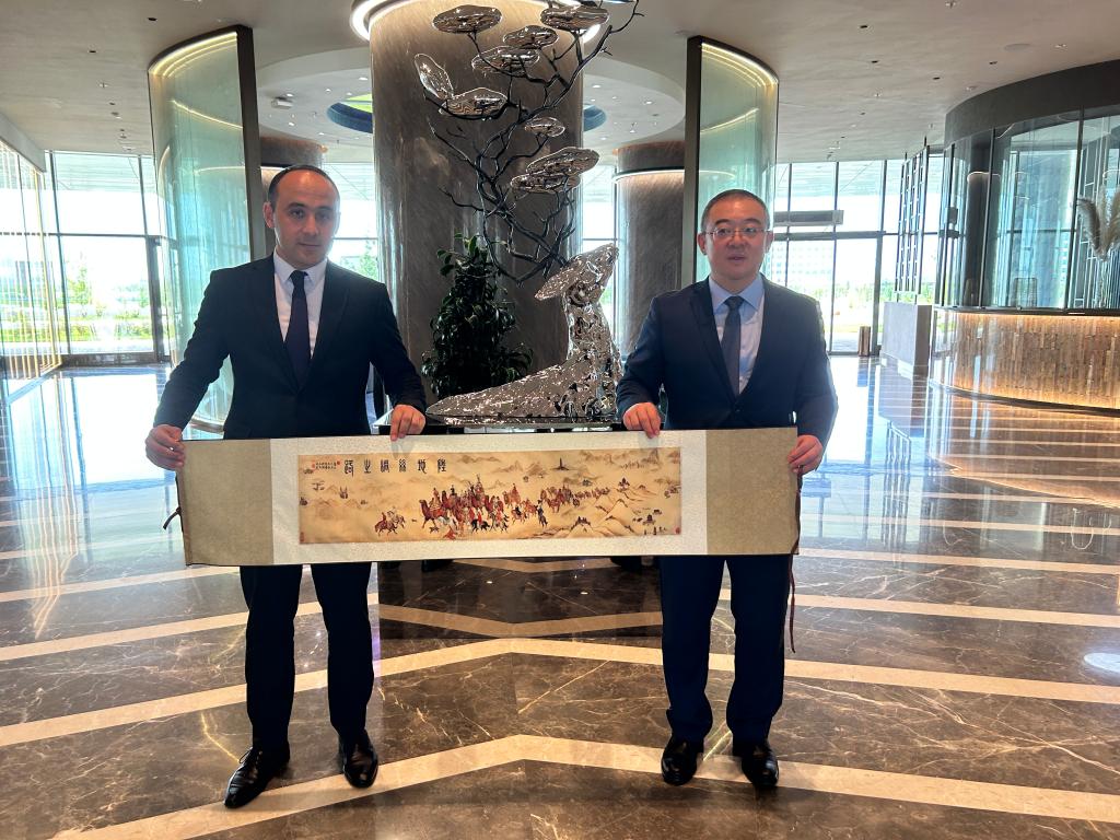 与撒马尔罕州副州长卡德罗夫、撒马尔罕国立大学副校长阿哈托夫会见