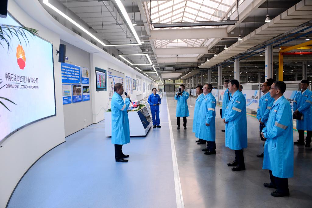 常江、王进富一行在中国石油集团测井有限公司执行董事、党委书记金明权陪同下,参观了公司成套装备产业化工房、智能制造车间,听取公司关键技术产品发展历程、应用情况等方面的介绍,现场观摩了智能制造车间实际运转情况。在园区,金明权向常江、王进富等介绍了超深穿透射孔器穿孔性能,常江、王进富就关心的问题与金明权不时驻足交流。
