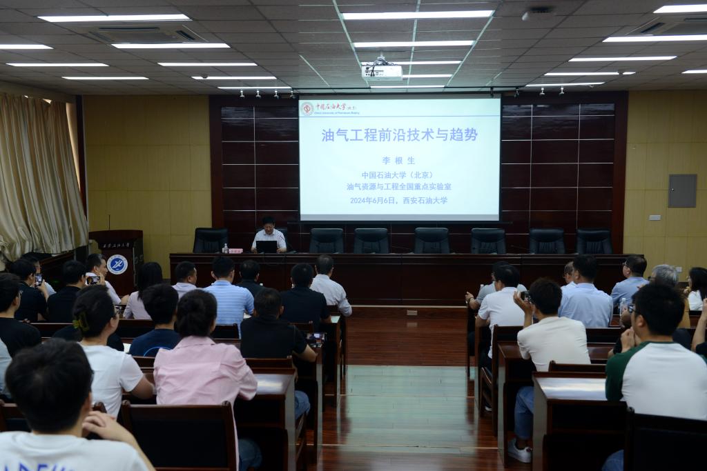 李根生院士围绕当前油气工程前沿技术与发展趋势为在场师生带来了一场精彩的学术报告。李院士表示,深井、复杂结构井是高效开发复杂油气的关键技术,钻井技术的发展已从牙轮钻井等萌芽阶段发展至目前的智能化钻井阶段,新型射流钻完井、地质-工程一体化、智能油气工程的发展对保障我国能源安全起着至关重要的作用。李院士详细从深井空化射流钻井理论与技术、空化射流处理地层方法与应用、水力喷射分段压裂理论与技术、水力喷射径向井立体压裂研究方面对新型射流钻完井技术作了详细讲解,并一一介绍了现场应用情况与取得成果。李院士还从地质-工程一体化和智能油气工程方面存在的关键科技问题与主要任务方面为在场师生进行了讲解。报告最后,李院士提到,地质-工程智能化是目前的前沿热点和行业发展趋势,必须抓住战略机遇期,加快战略布局和攻关力度,实现跨越式发展,另外要探索产学研协同创新机制和油气人工智能复合型人才培养模式,实现“学以致用、用以促学、学用相长”。