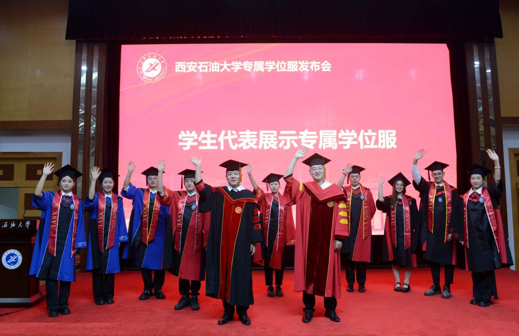 学生代表展示了专属学位服。