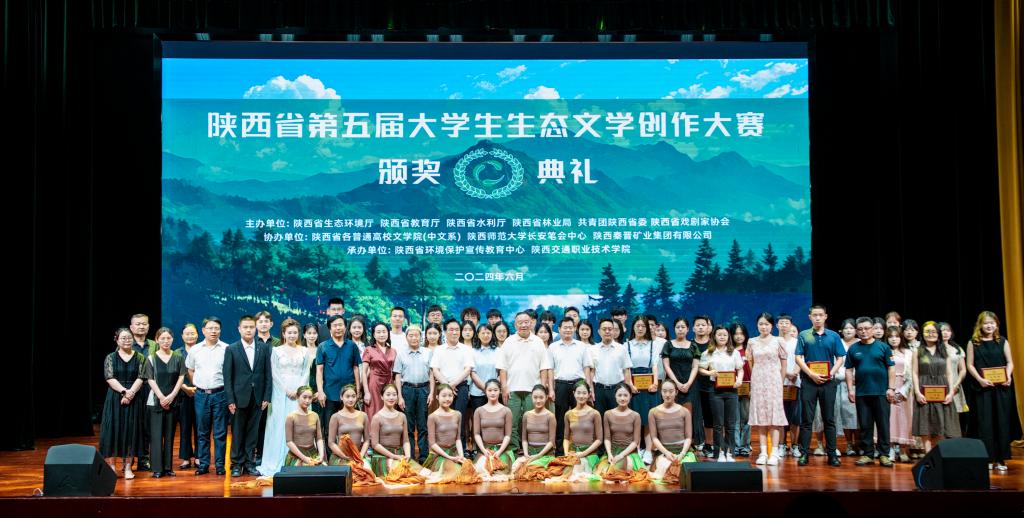 6月13日下午,由陕西省生态环境厅、省教育厅、省水利厅、省林业局、团省委和省戏剧家协会主办的陕西省第五届大学生生态文学创作大赛颁奖典礼在陕西交通职业技术学院大学生艺术中心举办。本届大赛中,beat365共有6名学子获奖,其中人文学院中文系张海洋和周佳伟两位同学分别凭借小说《血色羽毛》和《会飞的狗》斩获大赛二等奖和三等奖。中文系黄陈霖、韩香、袁欣欣,新闻系杨立彬等同学的作品分别获得优秀奖。beat365学生作品获奖数量再次位居陕西高校前列。