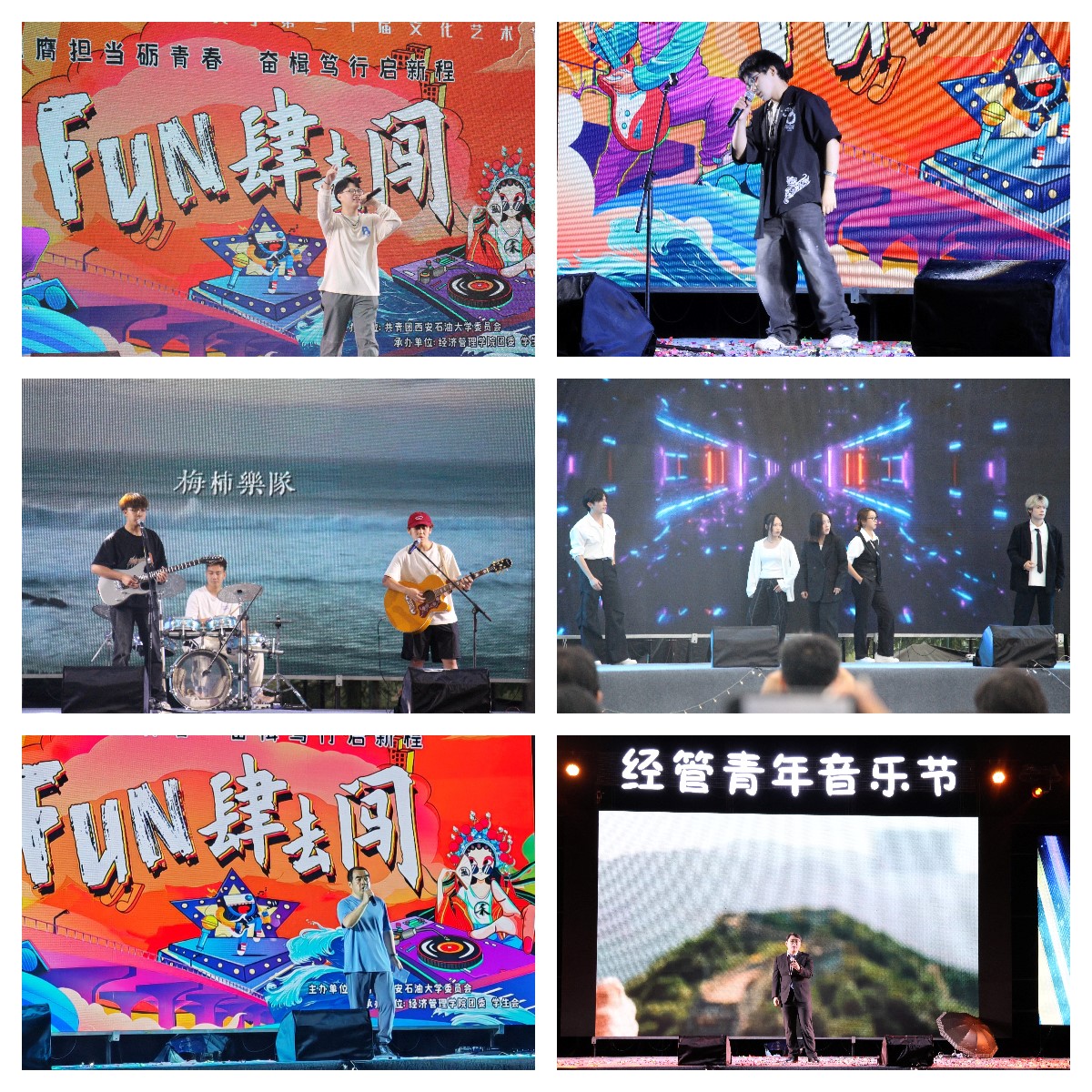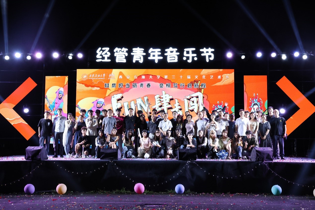 本次音乐节以“挺膺担当砺青春,奋楫笃行启新程”为主题,经济管理学院师生为大家带来摇滚、流行、电子、爵士等多种音乐类型的精彩演出。晚会在舞蹈表演《MOVE》中拉开帷幕,灯光与旋律交相辉映,活力四射的舞蹈点燃了全场观众的热情。乐队表演《一万次悲伤》《不归女孩》等歌曲青春洋溢,校友贺天深情款款演绎《你的背包》《No fear in my heart》《乌兰巴托的夜》三首歌曲,学院教师王业林、武欢、张立民倾情献唱《这一生关于你的风景》《嘿,我要走了!》《直到世界尽头》等精彩歌曲,将现场气氛推向高潮。李昱祯、周子雄、艾海提、李铟彤、曹骞、赵婧斐等同学以独唱、合唱形式精彩演绎《山丘》《如果可以》《Domino》《From the start》《违背的青春》等流行歌曲,《shuffle&shining》《puppet show》《attention》等舞蹈节目活力四射,收获了观众阵阵掌声。2024届毕业生带来《成都》《再见》等经典歌曲串烧,师生互动传递温情。伴随着歌曲的律动,现场观众挥舞起荧光棒,以音乐为桥梁,诠释青春的模样。