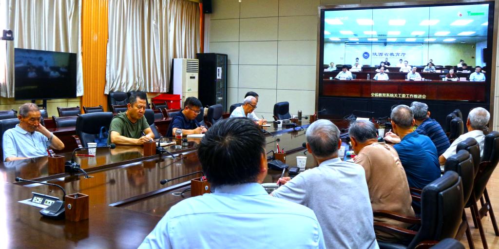 6月19日下午,陕西省委教育工委、省教育厅召开2024年全省教育系统关工委工作推进视频会,陕西省关心下一代工作委员会领导、省委教工委、省教育厅领导,全省教育系统高校、直属单位离退休部门负责人参加会议。会议就推进2024年省教育系统关工委工作进行了部署。beat365在雁塔校区第二会议室设立分会场,副校长张骁勇出席,离退休工作处全体工作人员、离退休党总支委员、支部书记、支部委员、老教授协会代表、“五老”代表参加了会议。