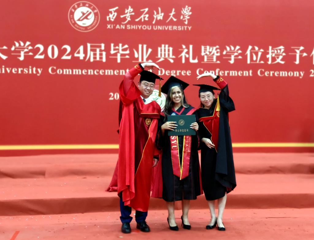 地球科学与工程学院地质2002班彭韵力、经济管理学院区域经济学21级白又竹、石油工程学院吉尔吉斯斯坦毕业生陈杰克分别代表毕业生和留学生发言。