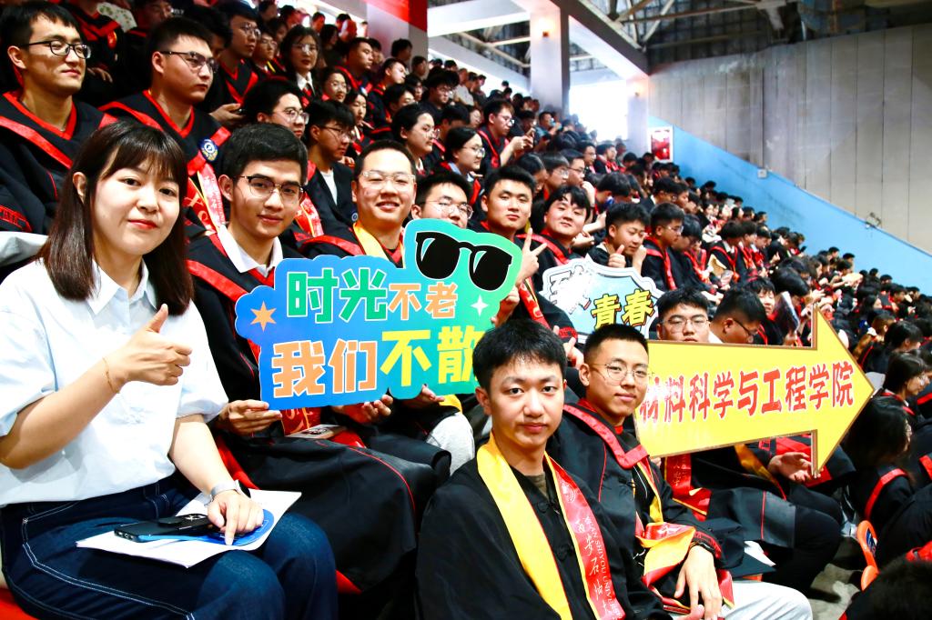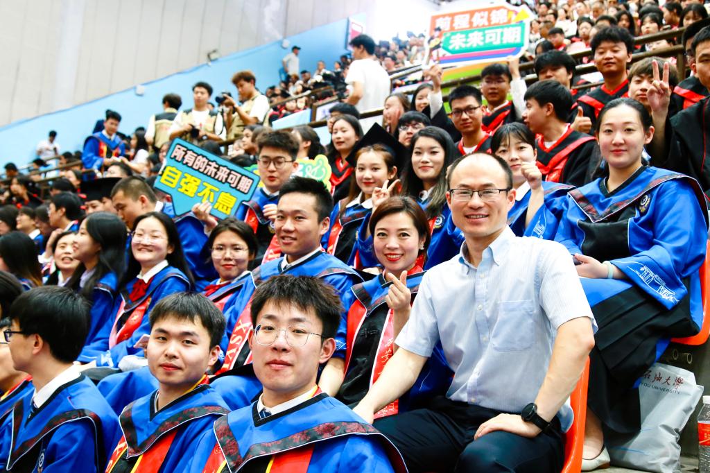 王进富校长在校学位评定委员会委员的见证下为到场的本科、硕士和博士毕业生拨穗、授予学位,并合影留念。