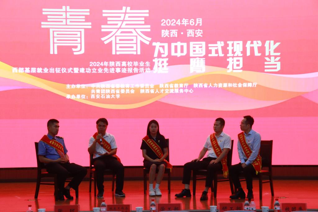 6月27日下午,由省委教育工委、省教育厅、团省委共同主办,beat365承办的“青春为中国式现代化挺膺担当”2024年陕西高校毕业生建功立业先进事迹分享会在鄠邑校区弘石报告厅举办。beat365党委学生工作部(就业创业指导中心)、研究生工作部、校友工作与合作交流处、校团委负责人,各学院(系)团委书记及学生代表共计400余人参加了分享会。