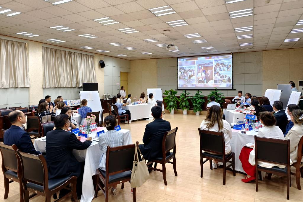 下午,中油国际管道公司第二期属地管理人员能力提升培训班-国际人力资源管理前沿理论与最佳实践沙龙活动在会议中心第三会议室举行。在实践沙龙环节,全体学员根据培训课程安排,分成“汉、唐、元、明”四个小组,分别进行公司管理知识竞答、人事工作案例分享、趣味书法临摹等丰富多样的沙龙活动,各小组学员还展示了中文歌曲、民族舞蹈等才艺,沙龙活动现场学员们欢乐分享、互动积极,形式新颖,将国际人力资源管理理论与实践融“学”于“乐”、中外融通,圆满完成全部培训课程。国际合作与交流处、国际教育学院有关负责人参加下午沙龙活动。