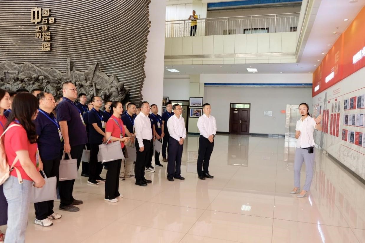 7月16日,全体学员参观了玉门油田铁人王进喜纪念馆、“693”人防工程以及老君庙采油厂、玉门炼油厂,瞻仰了孙建初纪念碑。在铁人王进喜纪念馆中,学员们向铁人王进喜雕像敬献花篮,重温入党誓词。在讲解员引导下,培训学员通过观看历史图文、珍贵文物等方式,从苦难经历、创业玉门、会战大庆、心系家乡、精神永存五个部分,详细了解了铁人王进喜的光辉事迹,加深了对铁人精神认识和理解。在参观“693”人防工程过程中,研修学员深刻体会了玉门人民为保障国家石油资源安全修建人防工程所付出的艰辛,强化了党性意识和宗旨意识。在老君庙采油厂,学员们追寻铁人足迹,先后参观了老君庙一号井旧址、老君庙展览室、西河坝窑洞旧址、企业精神教育基地603岗位,回顾了老君庙油矿的开创和光辉发展历程,深入了解了老一辈玉门石油人“一厘钱”“穷捣鼓”“找米下锅”“小厂办大事”“再生产”的精神。