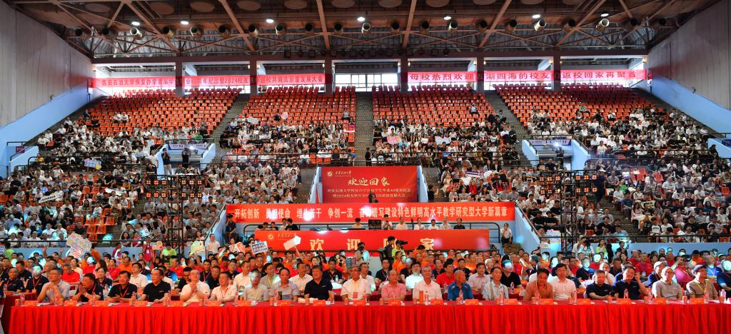 7月27日上午,学校在雁塔校区体育馆隆重举行了恢复办学首届学生毕业40周年纪念暨2024校友秩年返校共商高质量发展大会。学校党政领导常江、王进富、张木、王辉强、程永清、杨战社、张荣军、张君涛、张骁勇、赵健、樊晓民出席会议,校友代表、校友家属、各地校友分会负责人代表、校友企业家联合会代表、历任校领导代表,各职能部门和院(系)负责人、教师代表和在校生代表共计1200余人参加会议。