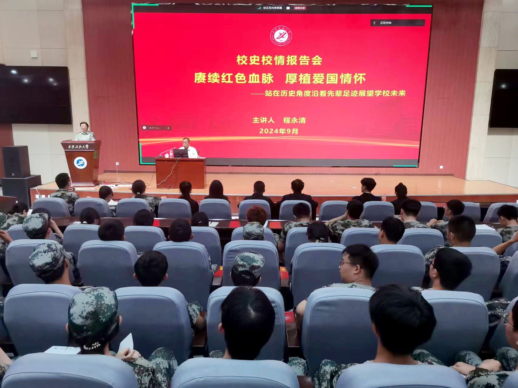 新生入学教育是大学教育的起点,为帮助新生了解校史校情,厚培爱校荣校情怀,9月4日下午,校党委副书记程永清为2024级新生带来新生入学系列教育第一课“赓续红色血脉厚植爱国情怀-站在历史角度沿着先辈足迹展望学校未来”,2024级博士研究生、硕士研究生、本科生、预科生6700余人分别在鄠邑校区弘石学术报告厅、博览楼、博思楼教室线上线下参加报告会。