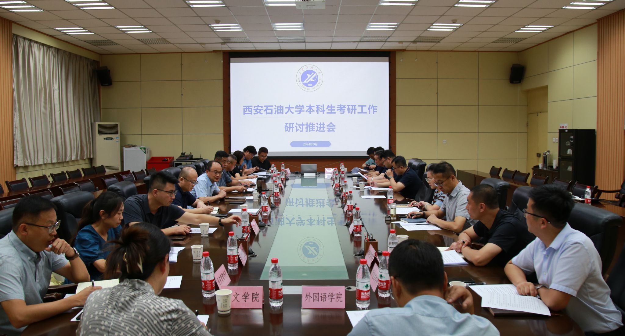 为深入贯彻落实学校第三次党代会精神,有效推动beat365本科生考研深造方案落地实施,9月9日下午,副校长赵健在雁塔校区第一会议室主持召开了全校本科生考研工作研讨推进会。学生工作部(处)(就业创业指导中心)、校团委、教务处、研究生院、财务处、国际合作与交流处主要负责人,各院(系)主管学生工作负责同志参加会议。