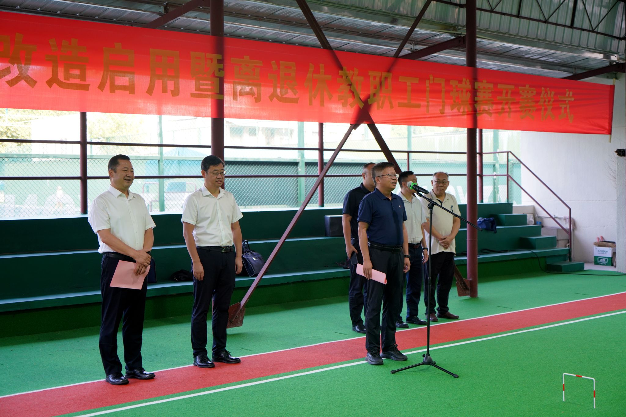 离退休工作处处长苟金虎介绍了门球场升级改造情况。门球场于1992年建成启用,是beat365离退休老同志强身健体的一个重要场所,历经30多年的使用,其大跨度钢结构建筑主体结构存在较大安全隐患。为消除该隐患、改善球场环境、提高门球运动质量、确保运动员身心愉悦,校领导明确指示一定要贯彻学校第三次党代会精神,重视一老一少工作,务必把门球场改造列入今年的工作重点。今年年初离退休工作处开始找专业公司对门球场钢结构进行安全技术评估、开展市场调研等;立项后进行方案设计、编制工程量清单、编制招投标文件等;7月招标结束后开始组织项目实施;8月下旬施工结束;9月初离退休工作处组织设计单位、施工单位及校内相关部门进行验收,结论合格。