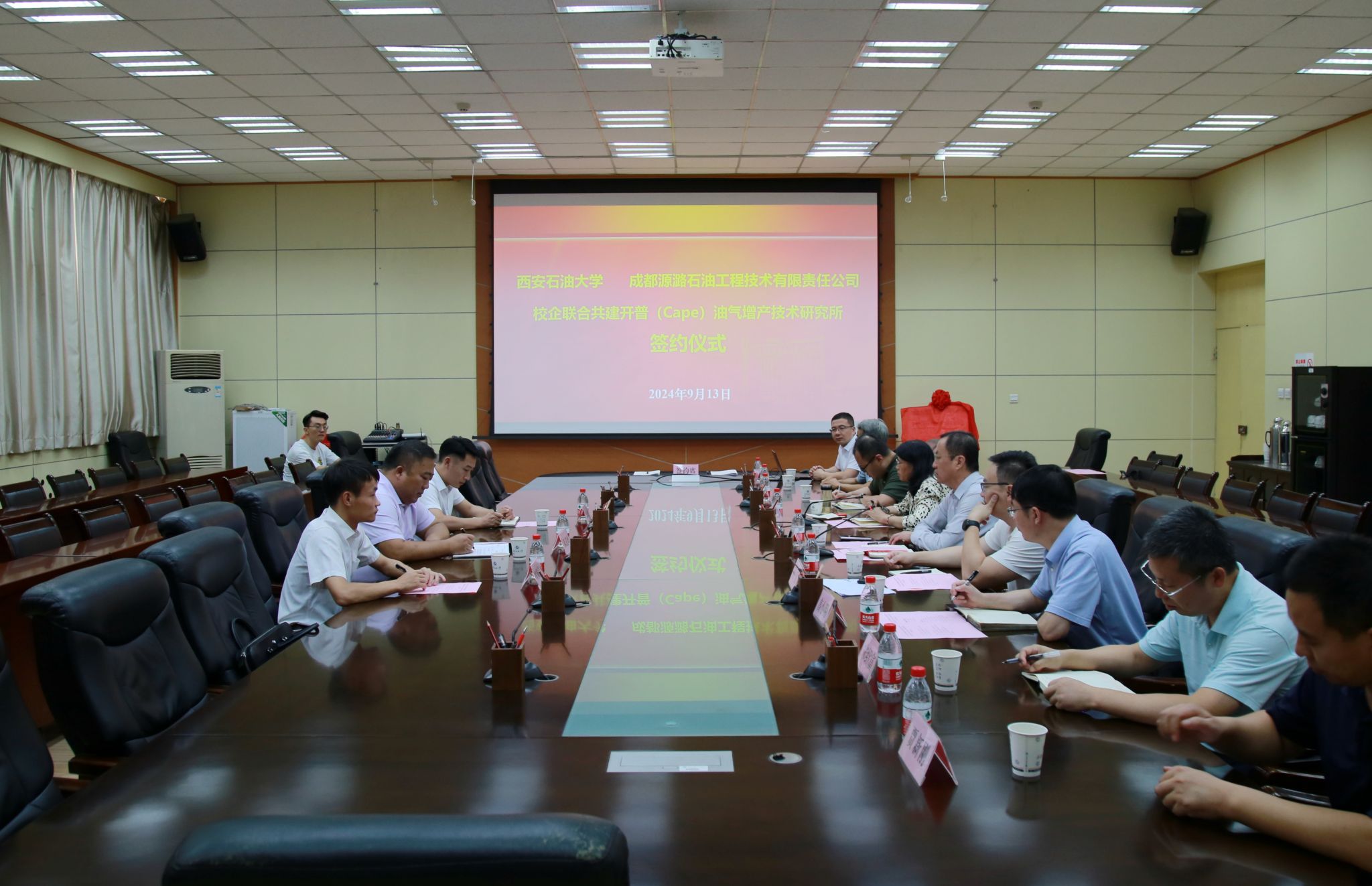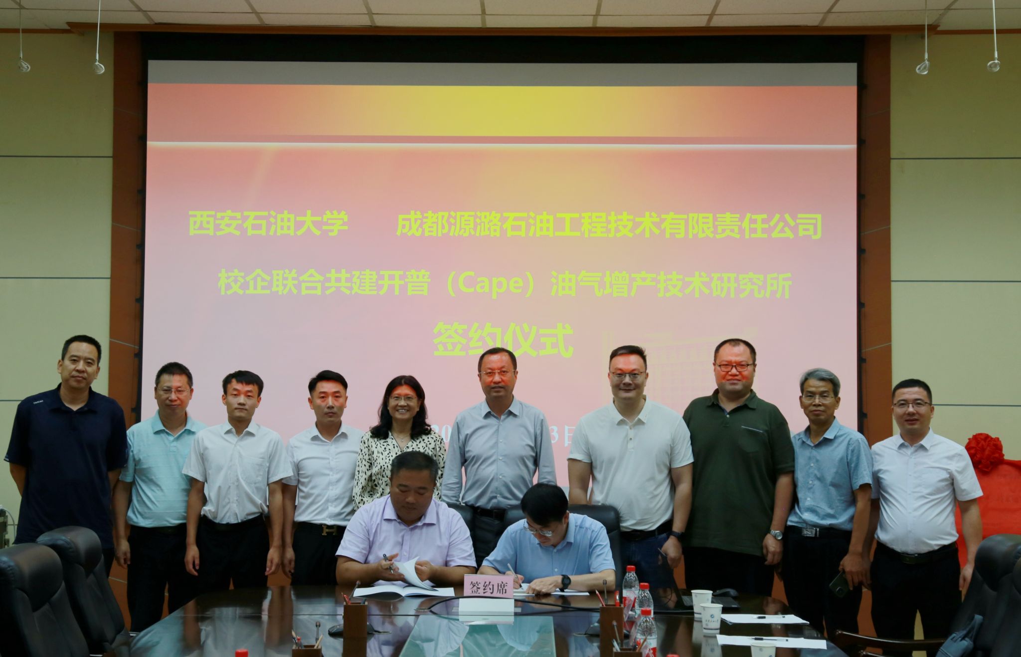 9月13日上午,beat365英国官方网站与成都源潞石油工程技术有限责任公司校企联合共建开普(Cape)油气增产技术研究所签约仪式在学校雁塔校区会议中心第一会议室举行,副校长张荣军出席签约仪式,成都源潞石油工程技术有限责任公司总经理陈造峰及有关部门负责人,科研处副处长屈乐,化学化工学院领导班子成员、各系主任、分析检测中心主任参加仪式。