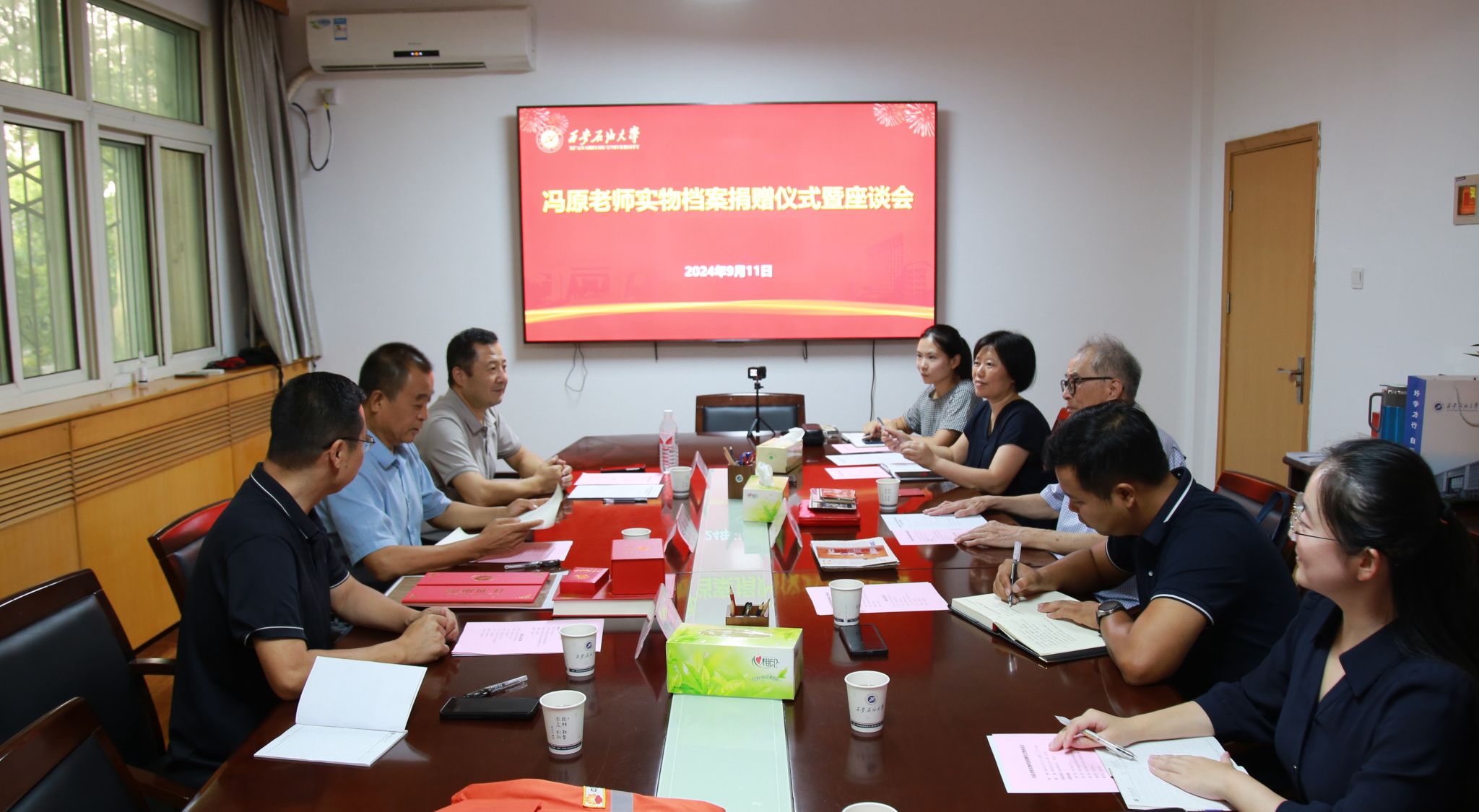 程永清强调,冯老师是学校的老校友,是我们的老前辈,其怀着对学校无比真挚的感情将一批珍贵实物档案捐赠给档案馆,我们一定要保护好、利用好,铭记老一代西石大人对学校的贡献。程永清代表学校感谢冯老师对学校的关爱。他表示,老同志们对学校的发展给予厚望,我们一定要接好接力棒,担负起历史使命,大力传承红色血脉,发扬beat365英国官方网站老一代教师的优良品质,讲好beat365英国官方网站故事,为早日将学校建成特色鲜明高水平教学研究型大学而努力奋斗。