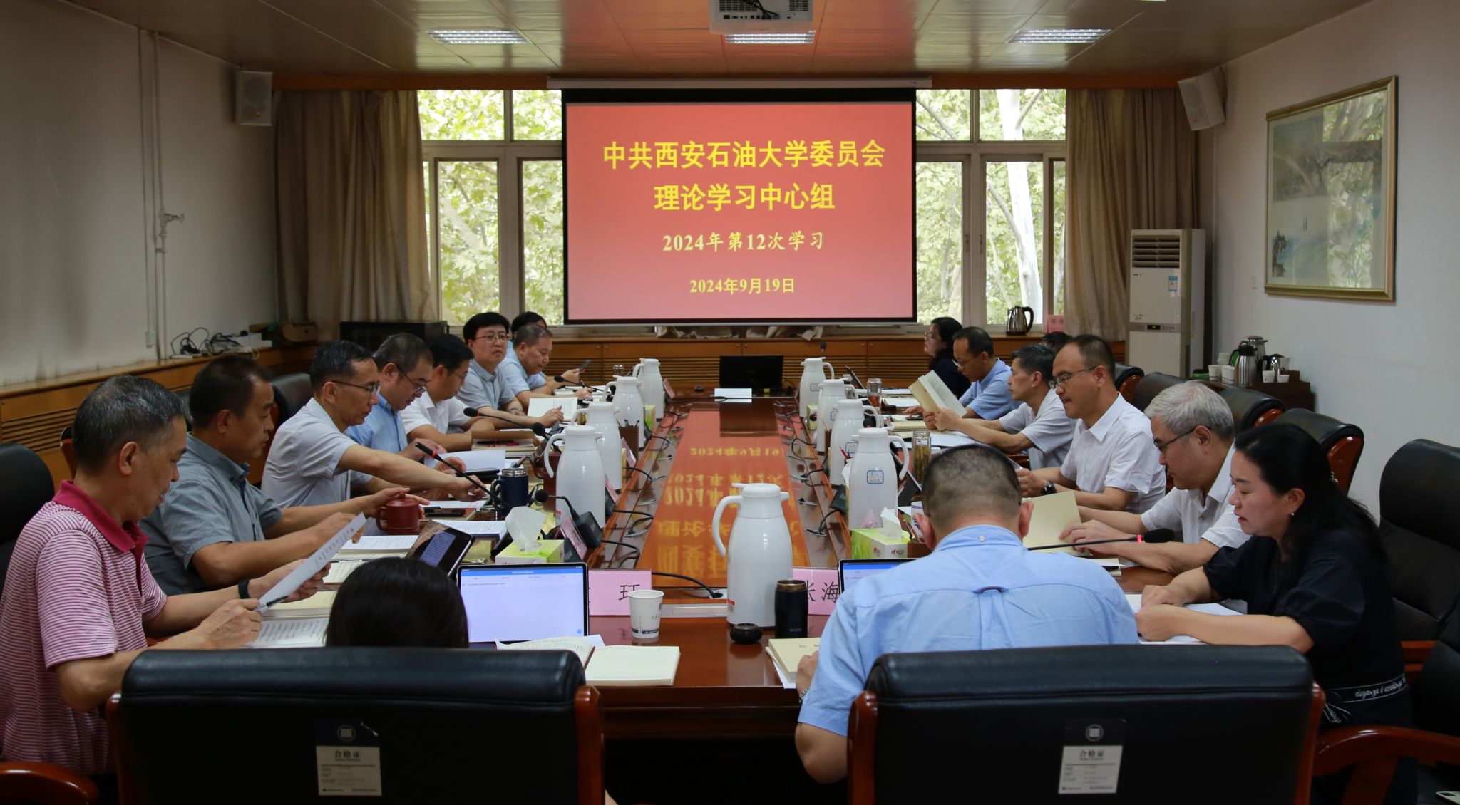 9月19日下午,校党委理论学习中心组2024年第12次学习会在雁塔校区行政楼五楼会议室召开,会议聚焦习近平总书记在全国教育大会上的重要讲话精神和习近平同志《论教育》进行学习。校党委书记常江主持并讲话,校党政领导王进富、张木、王辉强、程永清、杨战社、苏文甫、张君涛、赵健、樊晓民,校党委理论学习中心组成员参加会议。