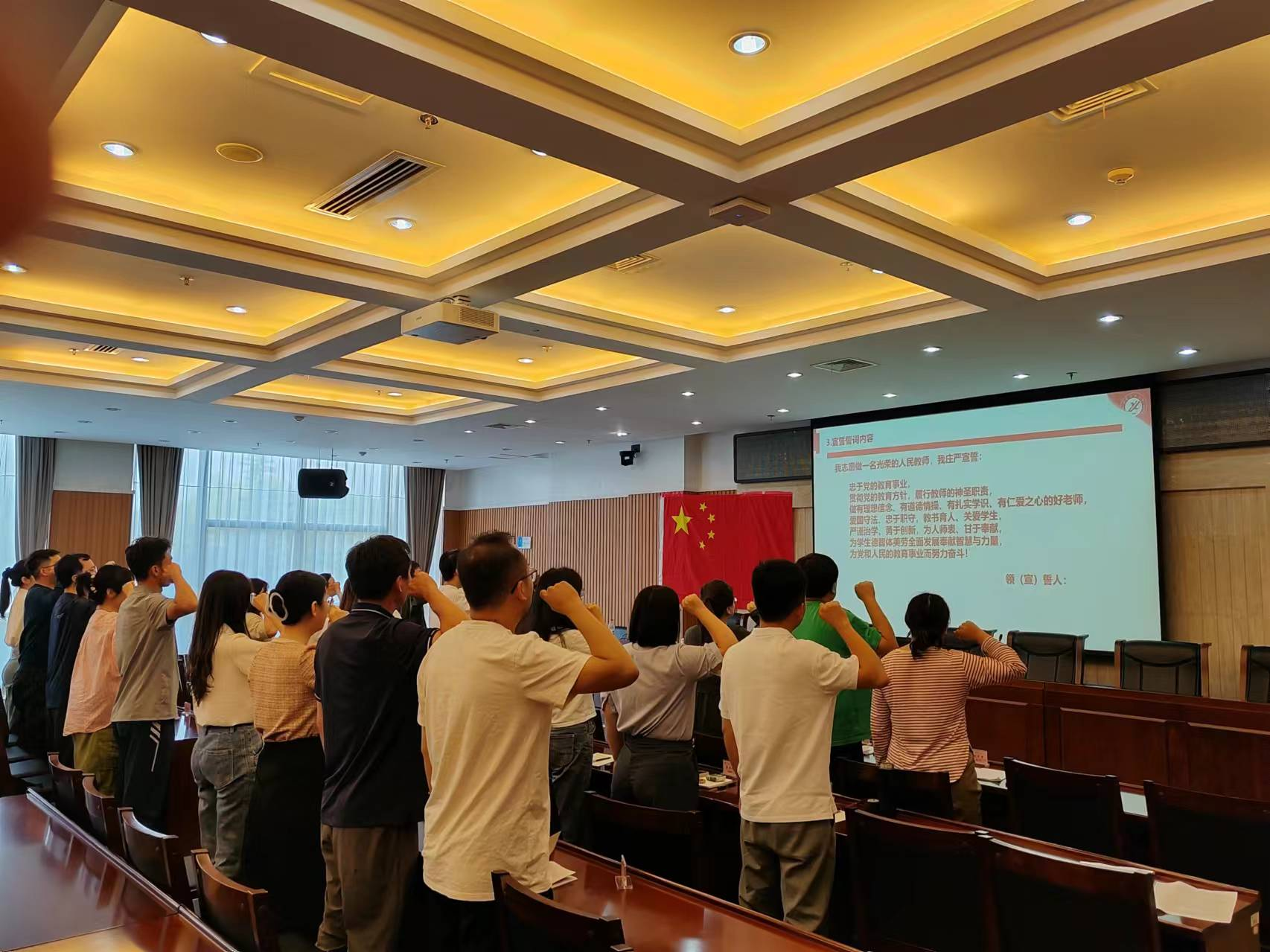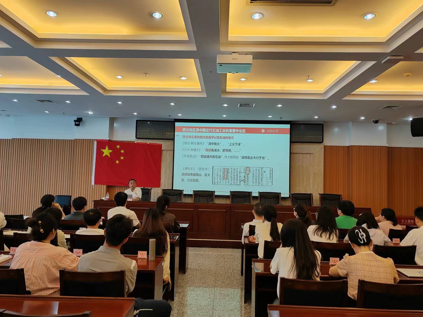 讲座开始前,教师工作部组织新入职教师参观了校史馆和铁人王进喜纪念馆,举行了教师宣誓活动。