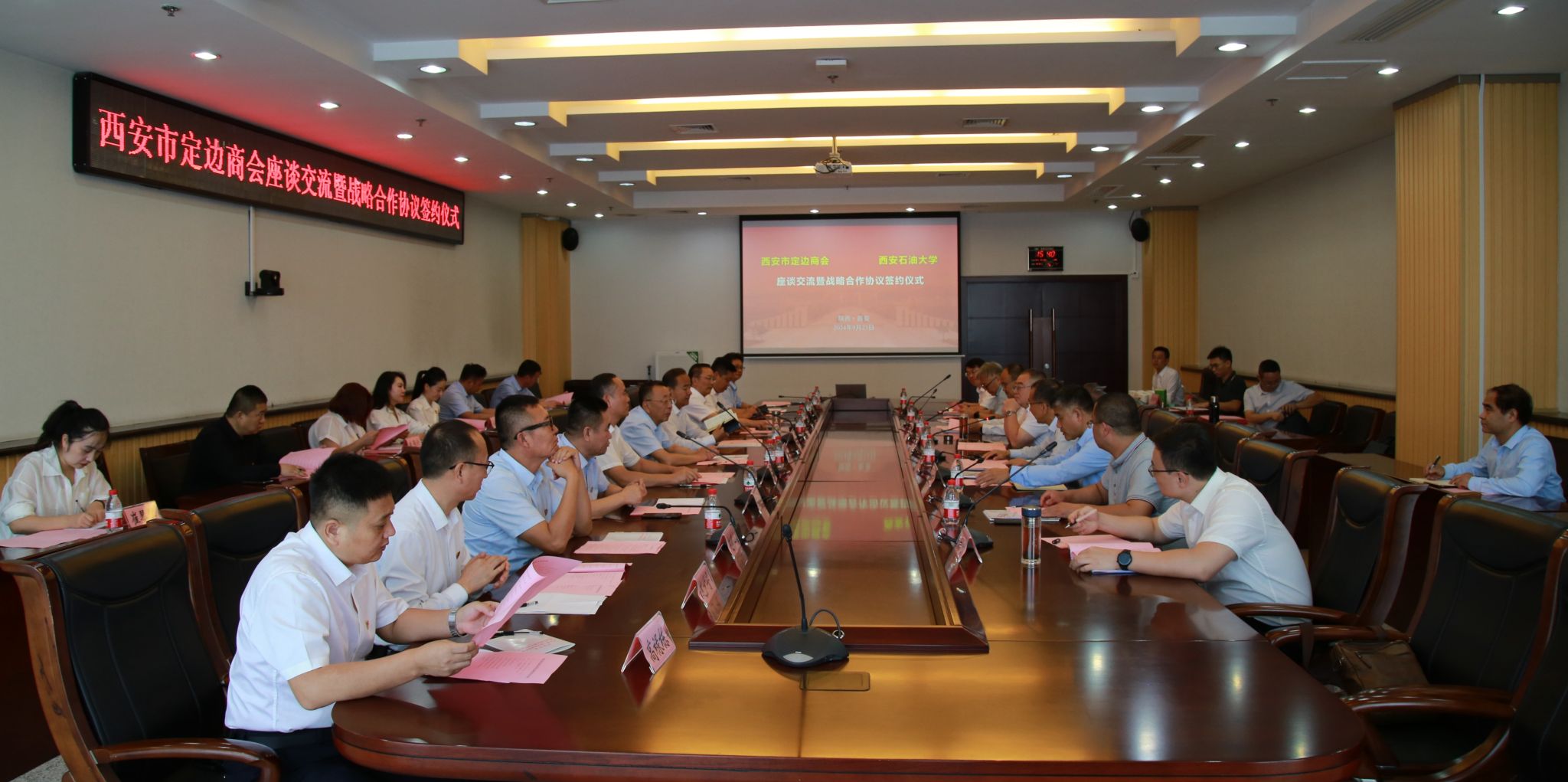 西安市定边商会部分理事会成员单位;beat365科研处、校友工作与合作交流处、石油工程学院、化学化工学院负责人参加会议。