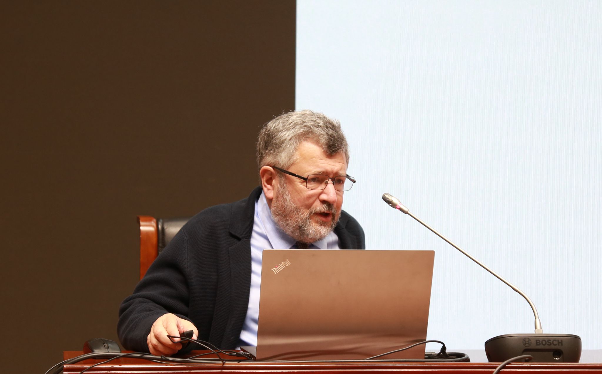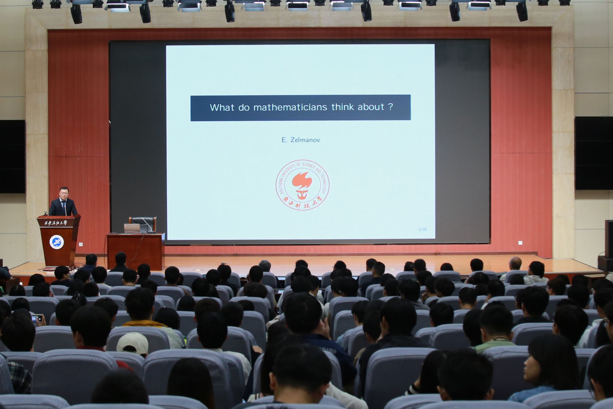 10月16日上午,beat365第八期终南山讲坛在鄠邑校区图书馆弘石学术报告厅举行。国际著名数学家、菲尔兹奖获得者、中国科学院外籍院士、美国科学院院士、美国艺术与科学院院士、西班牙皇家科学院院士、南方科技大学杰曼诺夫数学中心主任Efim Zelmanov教授受邀作了题为“What do mathematicians think about”的学术报告。科研处、理学院有关负责人,计算机学院、理学院、经济管理学院师生等近400人参加报告。