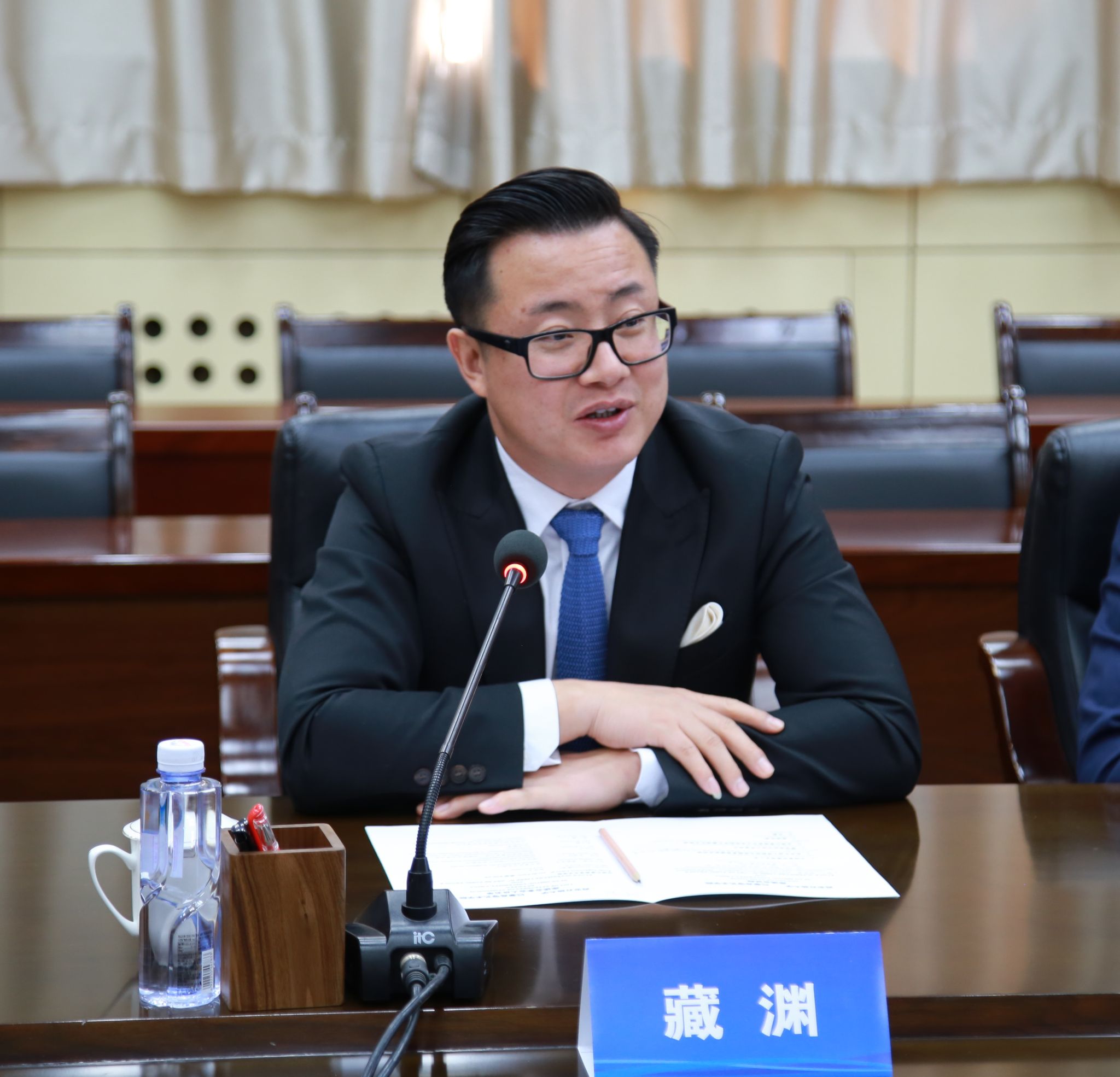 CANG YUAN(藏渊)对学校的热情接待表示感谢。他简要介绍了巴黎高等艺术学院的办学历史和特色。他表示,两校在艺术设计、视觉传达、旅游管理等专业具有良好的合作基础。希望双方加强交流互动,积极推动艺术设计专业硕士研究生“1+1+1”联合培养、3个月高级进修项目等合作,实现两校合作共赢。