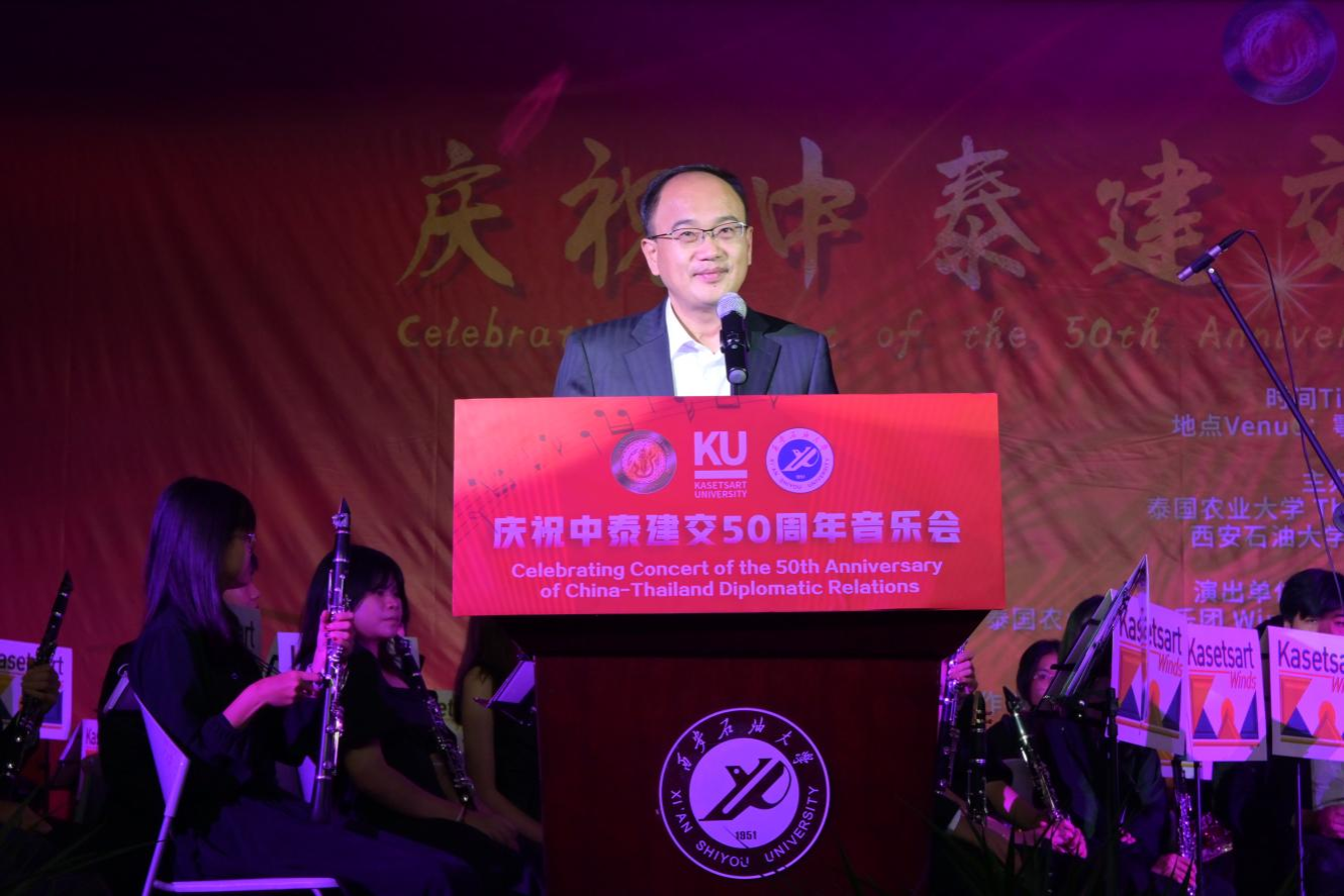 10月29日晚,由泰国农业大学、beat365英国官方网站主办的高雅艺术进校园—庆祝中泰建交50周年音乐会在beat365鄠邑校区腾辉大学生活动中心举办,泰国农业大学副校长奴察娜塔·蒙功、beat365副校长赵健出席活动。学生工作部、校团委、国际合作与交流处、石油工程学院、音乐系相关负责人及各院(系)师生代表共计700余人观看演出,本次音乐会由泰国农业大学管乐团负责展演。