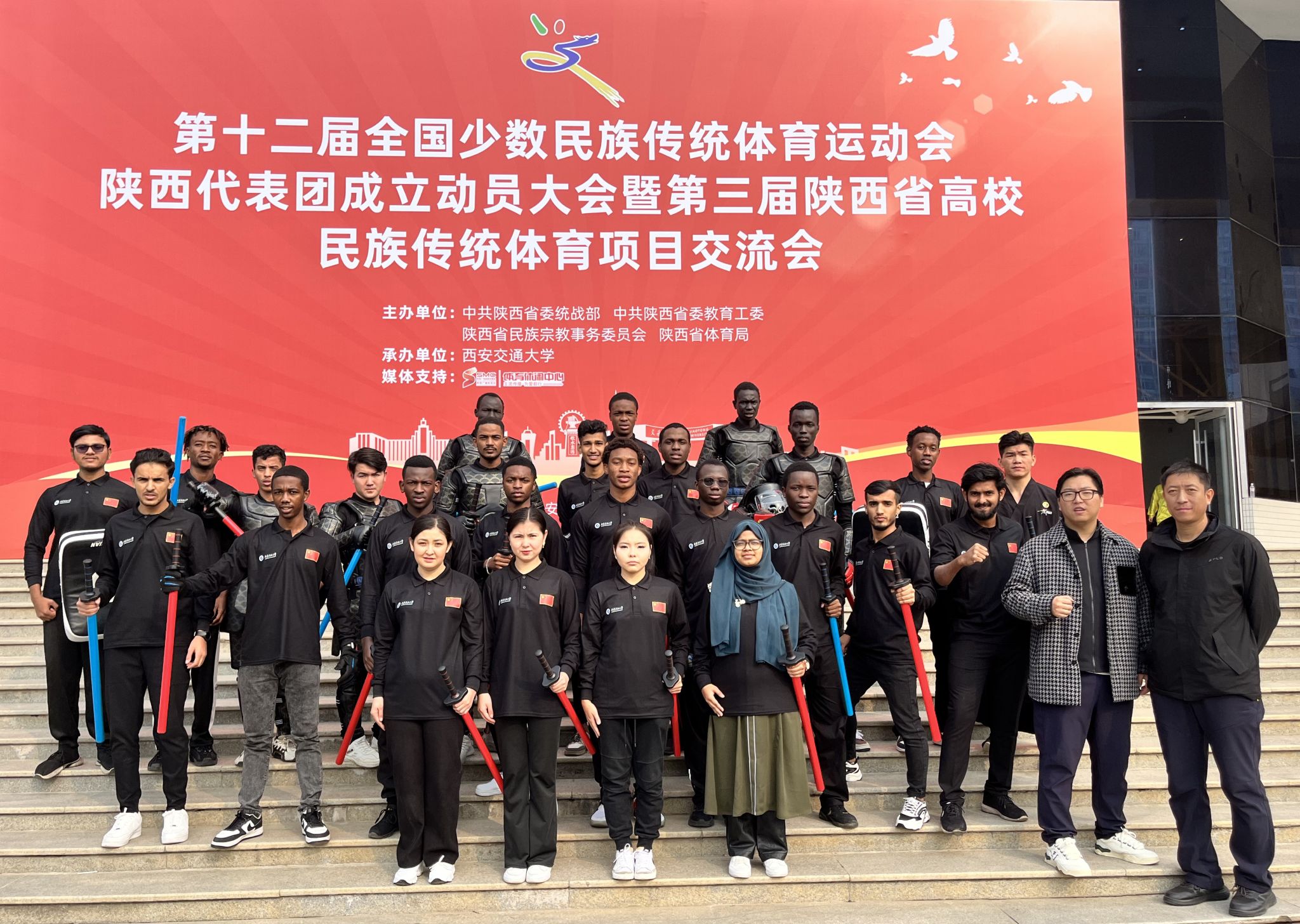 11月9日,由中共陕西省委统战部、中共陕西省委教育工委、陕西省民族宗教事务委员会、陕西省体育局联合主办的第十二届全国少数民族传统体育运动会陕西代表团成立动员大会暨第三届陕西省高校民族传统体育项目交流会在西安交通大学兴庆校区思源活动中心圆满落幕。beat365选送参赛的民族传统体育项目《剑舞三秦,心融四海》荣获二等奖。