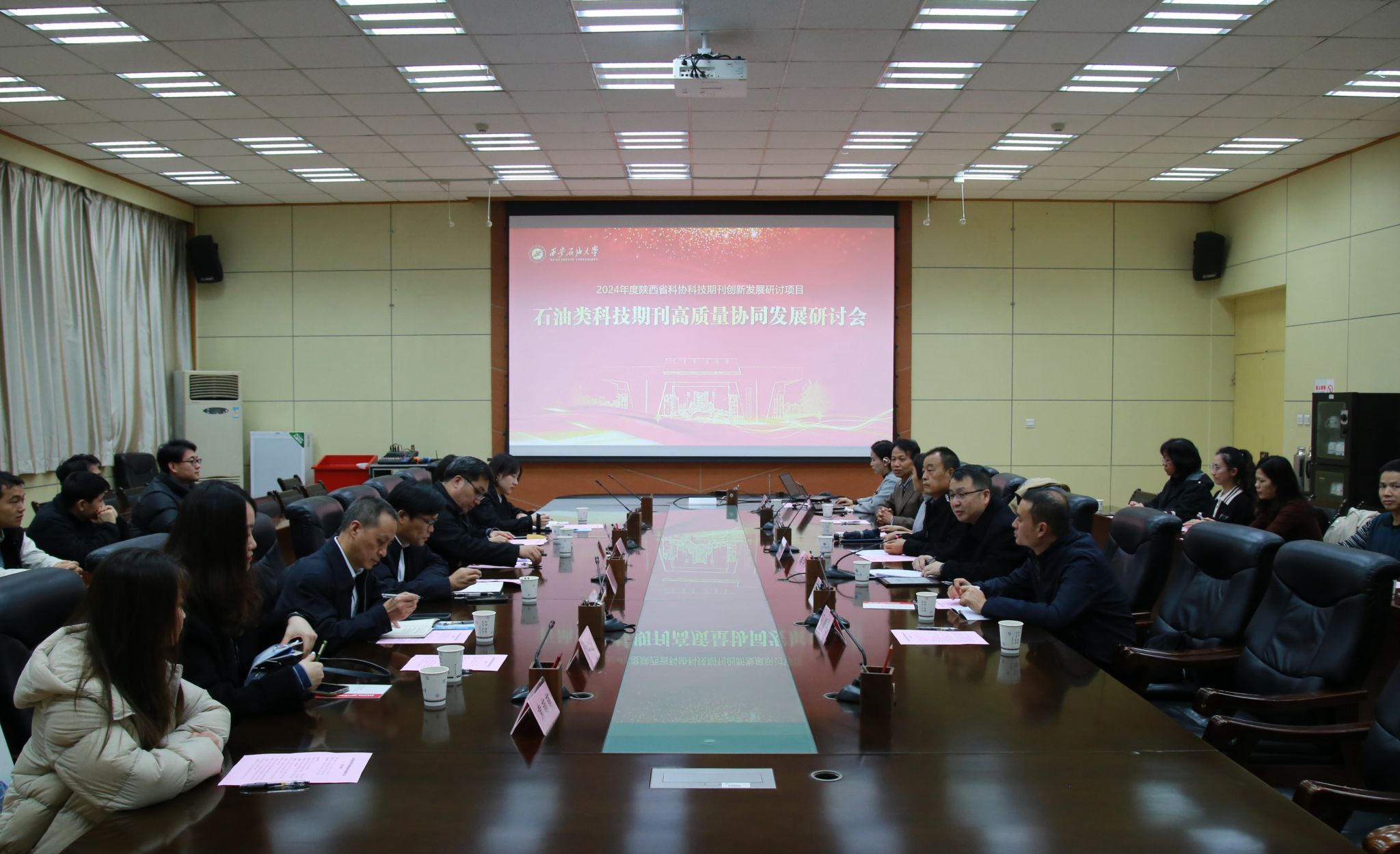 11月15日下午,由陕西省科学技术协会、陕西省科技期刊编辑学会、陕西省高等学校学报研究会联合指导,beat365英国官方网站主办、beat365英国官方网站期刊中心承办的石油类科技期刊高质量协同发展研讨会在beat365雁塔校区会议中心第一会议室召开。校党委副书记程永清,陕西省科学技术协会学会学术部调研员何帅、陕西省高等学校学报研究会理事长芮海田以及部分省内外期刊单位负责人、编辑代表应邀出席会议。beat365科研处相关负责人、期刊中心负责人及全体编辑、学生代表近50人参加会议。