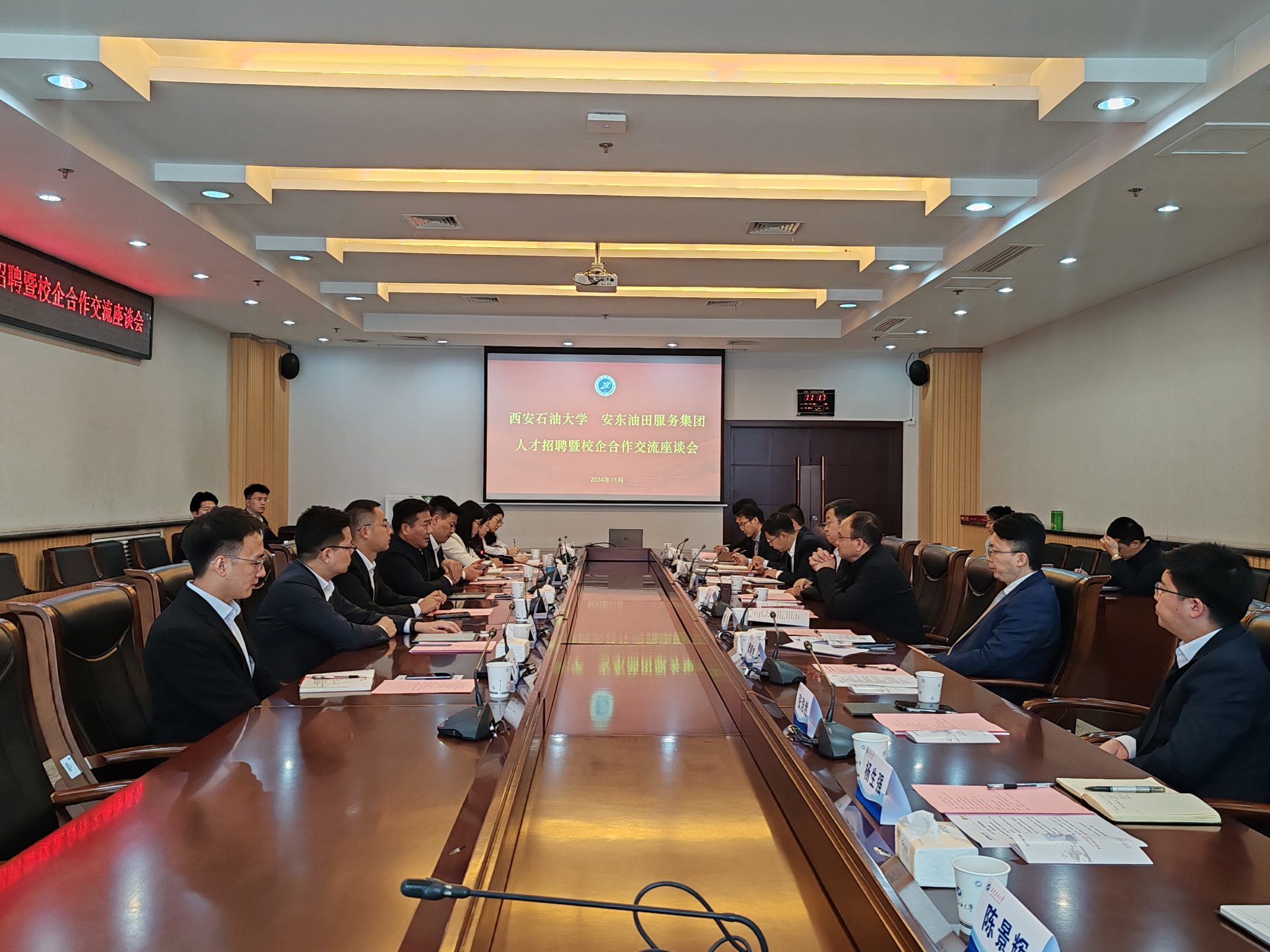 11月22日,beat365与安东油田服务集团在鄠邑校区第二会议室举行人才招聘暨校企合作交流座谈会。安东油田服务集团执行副总裁兼安东石油技术集团董事长刘国庆、beat365英国官方网站校长王进富出席会议。学生工作处(就业创业指导中心)、科研处、石油工程学院、电子工程学院、计算机学院、经济管理学院相关负责同志参加会议。会议由副校长赵健主持。