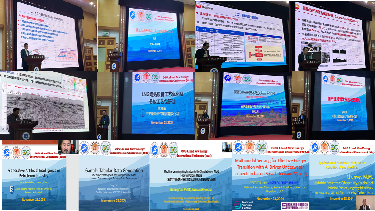 在会议交流阶段,2024油气AI与新能源国际会议以“油气AI科技创新,能源共谋绿色发展”为主题,特邀来自中国、英国、澳大利亚、沙特阿拉伯、哈萨克斯坦、土库曼斯坦等国家的13位知名专家学者,通过线下、线上,围绕AI在油气勘探、测井、地震、管道工程、地面工程、工程材料研究中的应用以及地热、光伏、储能等新能源领域做了精彩的学术报告,吸引了校内外200余名师生参加,为理解油气AI与新能源技术现状和发展趋势提供了宝贵机会。