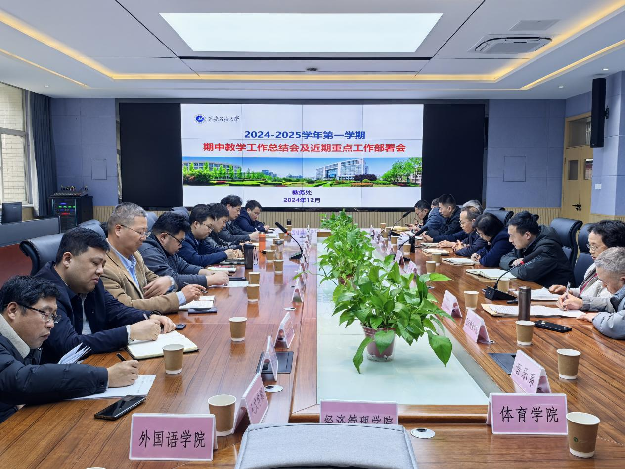 会上,学校教务处、高教研究与评估督导中心负责人从教学运行、实践教学、教学研究、课程建设、教材建设、招生工作、期中教学检查等方面,就学校本科教学工作的重点与难点以及下一步工作举措作安排部署。