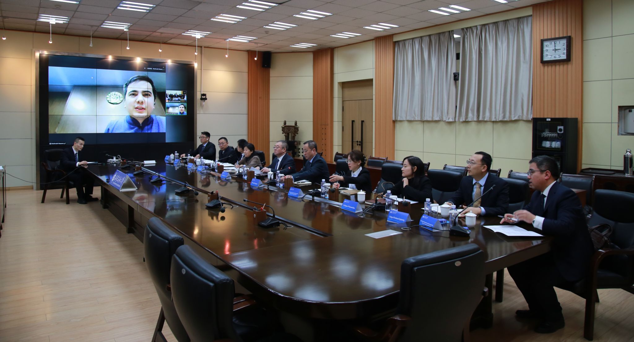 乌兹别克斯坦教育部国际司国际合作项目负责人绍科卢·纳扎罗夫(Nazarov Shokhrukhbek),beat365发展规划处、教务处、国际合作与交流处(国际教育学院)、石油工程学院、人文学院负责人参加会议。
