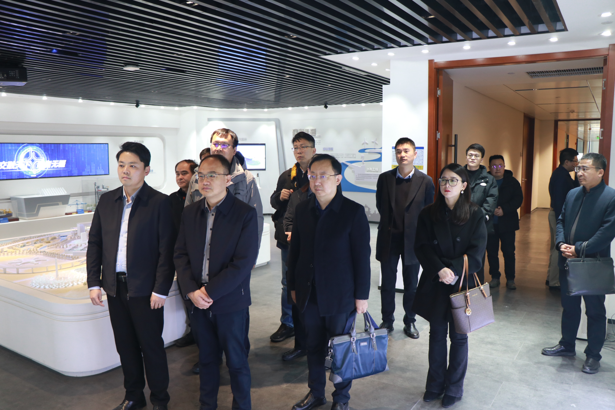 会前,在中交集团西北区域陕西一部总经理段鑫带领下,赵健一行参观了中交集团文化展厅。