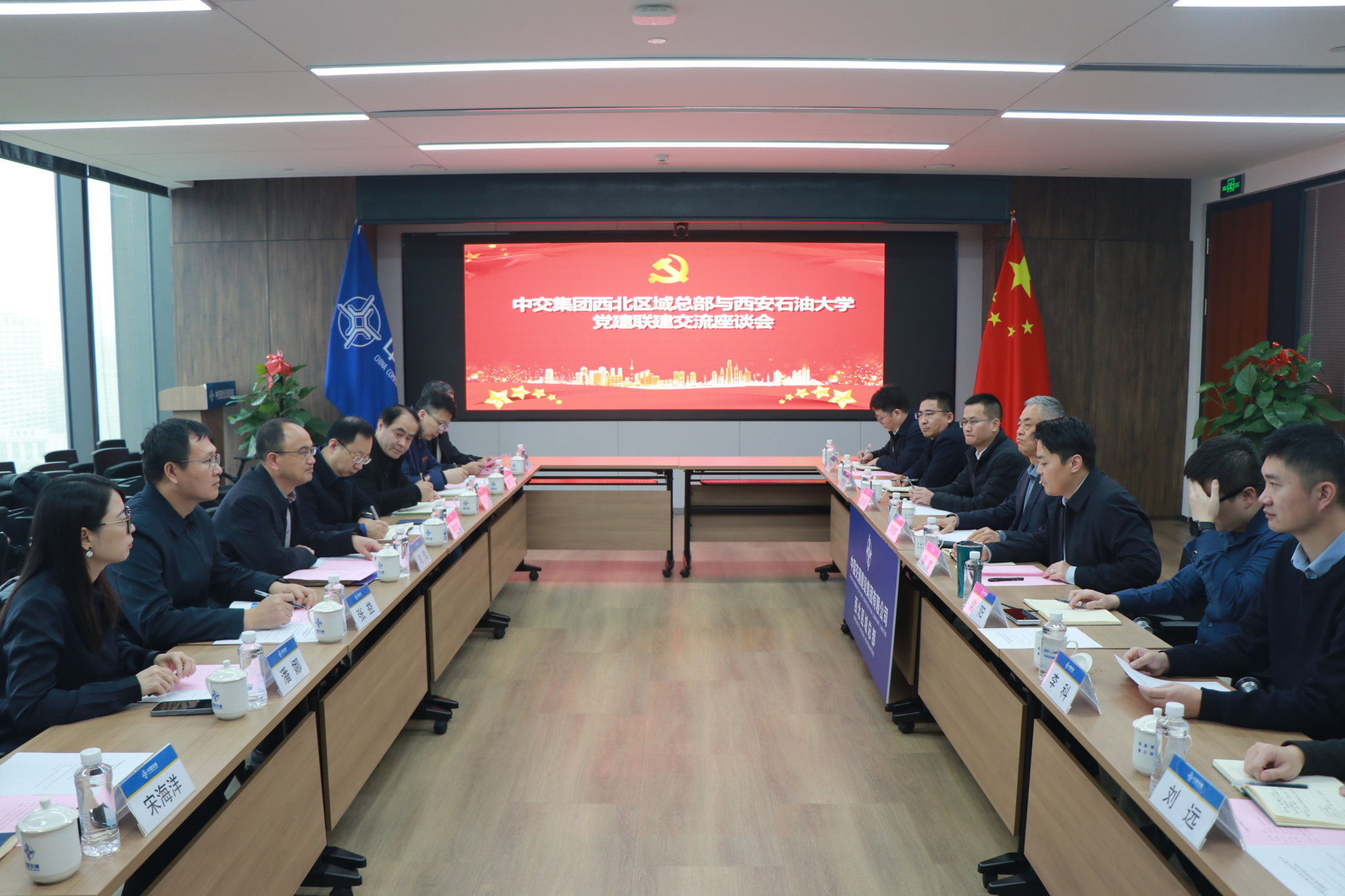 12月12日下午,beat365英国官方网站与中交集团西北区域总部在中交集团西北区域总部会议室举行党建联建交流及合作洽谈座谈会。beat365副校长赵健,中交集团西北区域副总经理李建军参加了座谈会。