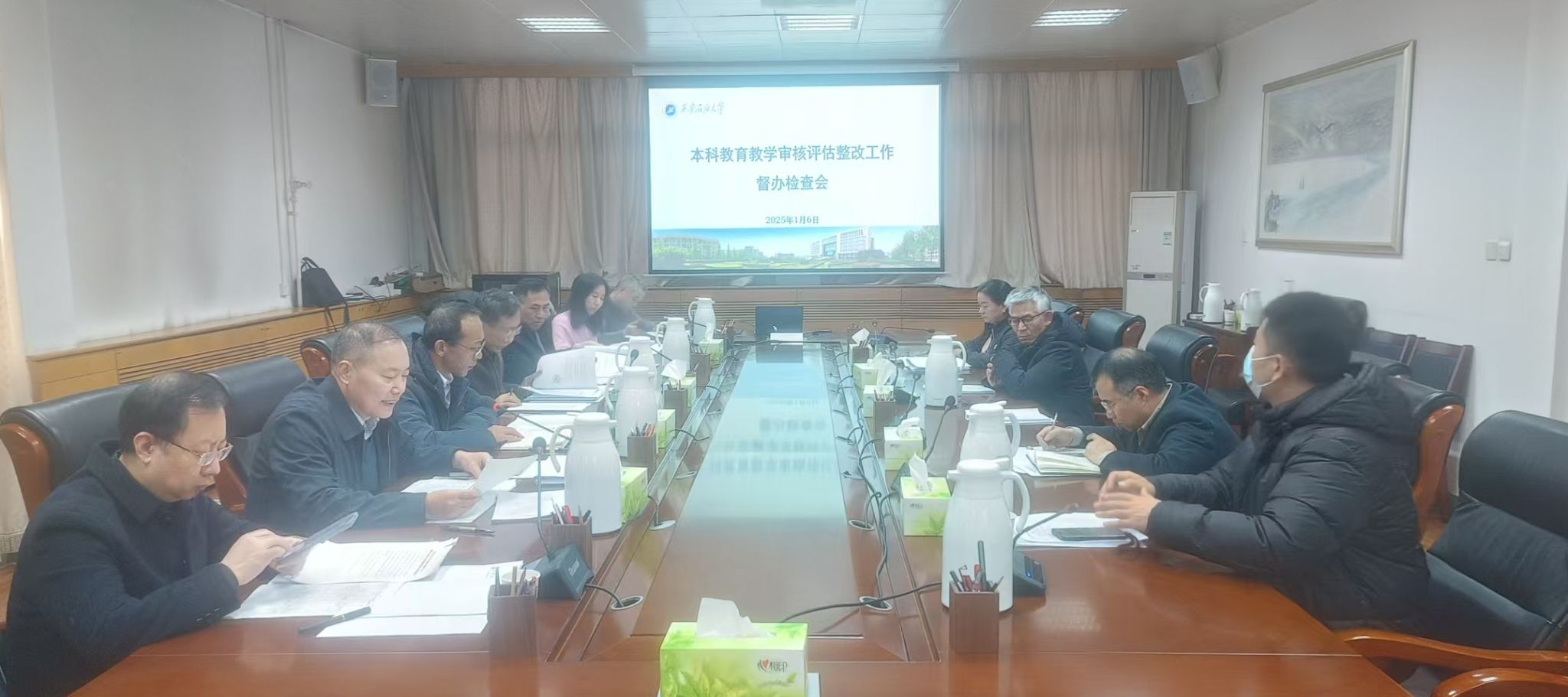 1月6日下午,学校在雁塔校区行政楼五楼会议室召开本科教育教学审核评估整改工作督办检查会。校党委副书记张木、副校长张君涛出席会议,党委办公室(校长办公室)、组织部、教师工作部、教务处、实验室管理处、高教研究与评估督导中心、科研处等部门负责人参加会议。