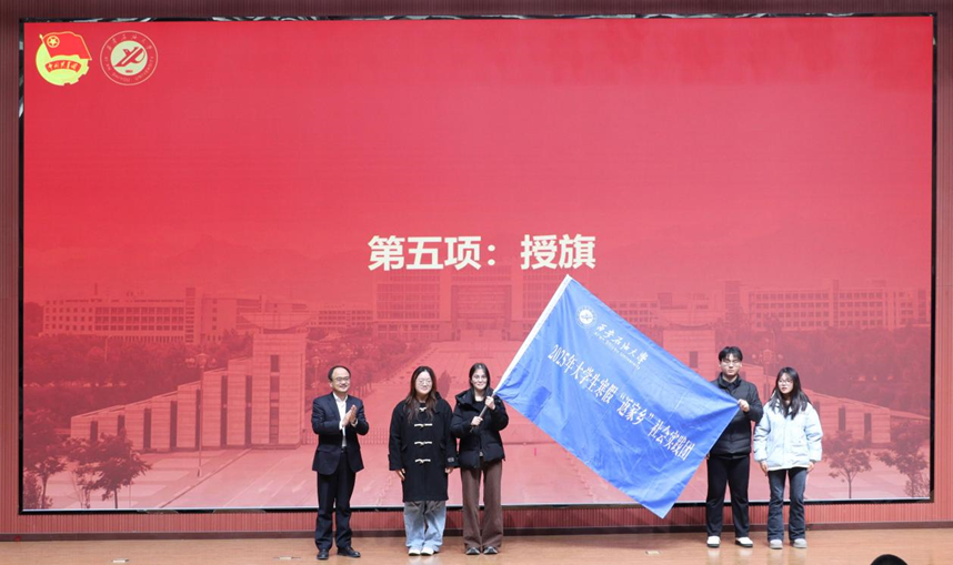 会上,校团委负责人宣读了《关于2024年beat365英国官方网站大学生暑期社会实践活动的表彰通知》《关于开展beat365英国官方网站2025年大学生寒假“返家乡”社会实践的通知》,赵健为2025年寒假“返家乡”社会实践团队代表授旗,与会部门负责人分别为2024年暑期社会实践先进个人代表、优秀团队、标兵团队、优秀指导老师、优秀组织单位颁发了证书和奖牌。经济管理学院商管2302班吴宇星同学代表2024年暑期社会实践获奖团队作了交流发言。