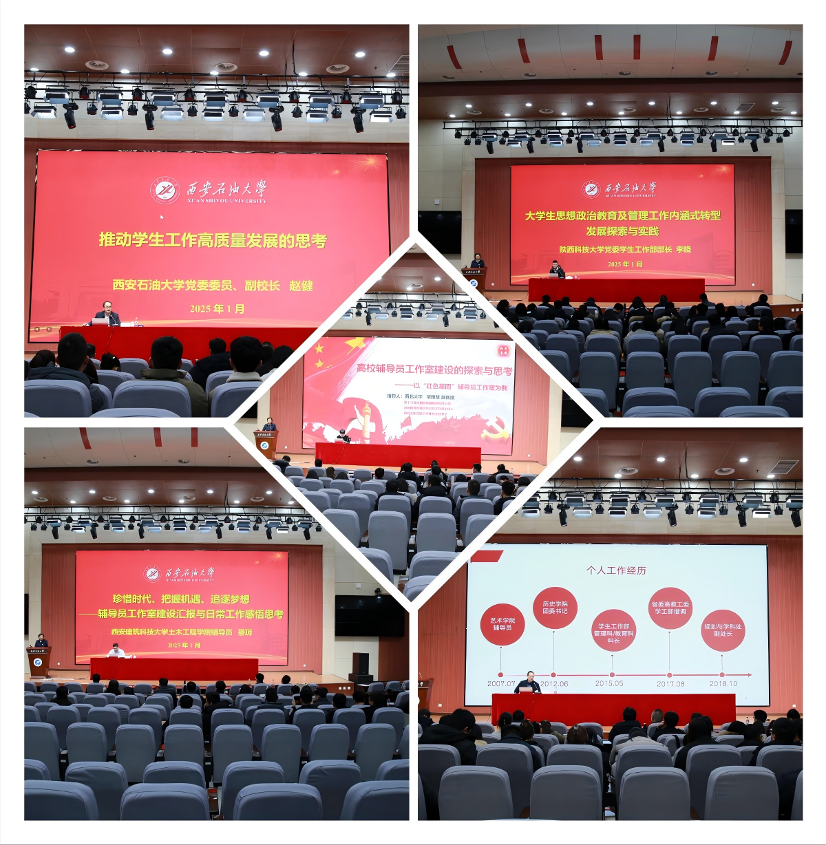 在学工干部专题培训中,副校长赵健以《立足新时代对标新要求打造新学工——推进beat365学生工作高质量发展的思考》为题向全体学工干部作专题辅导报告。他从打造新学工应秉持的基本理念、应运用的思想方法、应完善的体系架构、应把握的主要关系和应具备的能力作风等五个方面深刻剖析了推动学生工作高质量发展的实践路径,分析了学生工作的现状与不足,提出了新学工的探索与思考。他强调学校学生工作要以培塑“西石大学工”品牌为牵引,以铁人精神育人为特色,以人才培养为主线,以安全稳定为底线,以学工队伍能力建设为保障,实施“七持续”,加快推进学生工作由管理型向服务型、发展型转变的总体工作思路,着力解决高校思想政治工作价值引领、内涵建设、治理体系、责任落实、工作方法中存在的问题,实现人人、时时、处处育人的大思政格局。报告对提升学生工作育人质量具有很强的指导意义,为学工干部履职尽责和事业发展提供了新策略。同时,陕西科技大学党委学生工作部部长李晓作《大学生思想政治教育及管理工作内涵式转型发展探索与实践》专题讲座,分析了大学生思想政治教育及管理工作转型的必要性,结合工作案例介绍了思政教育及管理工作内涵式发展的探索,有助于学工干部提升学生工作水平和质量。西北大学生命科学学院组织员、辅导员、副教授常雅慧作《高校辅导员工作室建设的探索与思考——以“红色基因”辅导员工作室为例》专题讲座,讲授了辅导员工作室建设的出发点、建设路径和落脚点,分享了工作室在学生党建工作中的实践经验和深刻思考,启发了辅导员对学生工作的创新思路。西安建筑科技大学土木工程学院辅导员綦玥作《珍惜时代、把握机遇、追逐梦想——辅导员工作室建设汇报与日常工作感悟思考》专题讲座,以“溪涧清源”辅导员工作室的实践与探索引发辅导员专业化职业化专家化的工作反思,为高质量开展学生工作提供了宝贵的实践参考。西北大学发展规划与学科建设处副处长薛原作《对于学生工作的一些个人体会与思考》专题讲座,从辅导员的自我修养阐释了辅导员自我认知与工作方法,结合以生为本探索了辅导员工作本位选择与体系构建,为提升辅导员工作质效提供了有力指导。