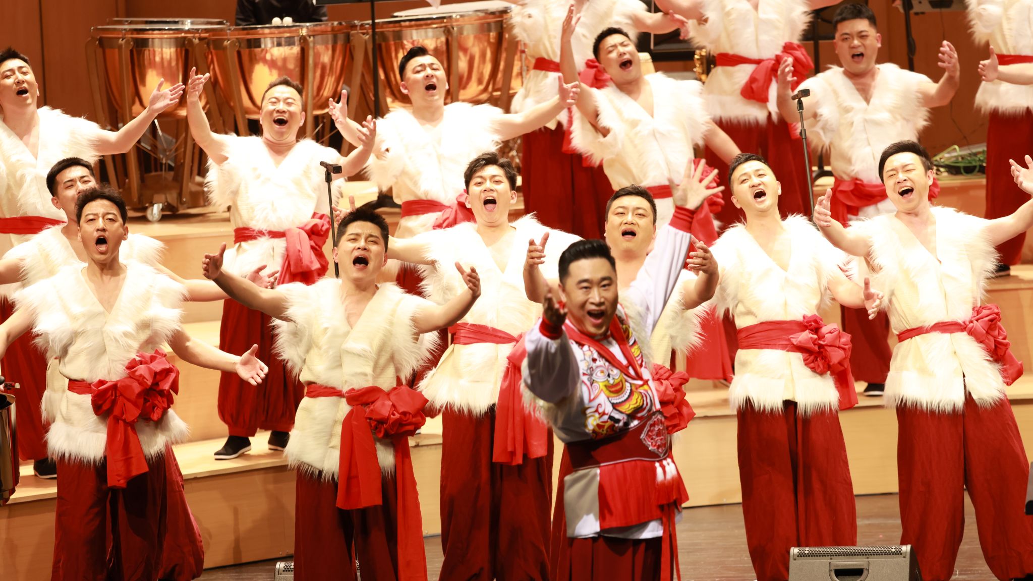 整场音乐会共分“古典之风”“流行乐章”“各地民歌”三个篇章,巧妙融合了榆林这座城市独有的历史文化底蕴与现代蓬勃朝气。其中,拉丁语演唱的选自清唱剧《布兰诗歌》中的唱段“在酒馆里”,作为世界经典男声合唱作品,一展合唱团的专业水准;韩语演唱的歌曲《你不要担心》,则是在榆林地区的首次公演,为观众带来别样的听觉体验。此外,在排练期间不胫而走的清涧方言歌曲《可想你哩》,凭借网络高达5000万的播放量,成为当晚的压轴曲目。演出时,台上台下齐声合唱,全场互动热烈,将氛围推向高潮。一位观众在结束时不禁感慨:“原本对本土音乐会期待不高,没想到却带来巨大的惊喜!榆林如今也与世界接轨了!”更有观众不远千里,从海南、山西、内蒙、西安等地专程赶来榆林观看,对合唱团成员的高水平表现给予了高度赞誉。
