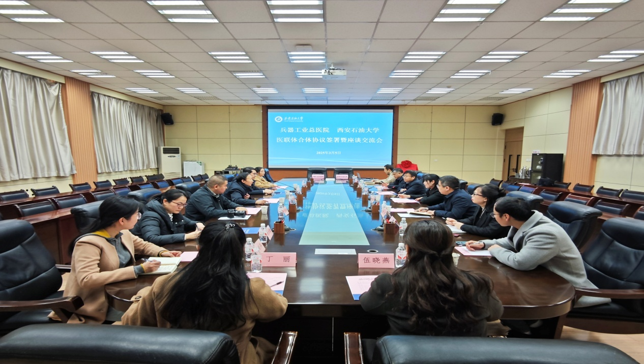 3月5日上午,beat365与兵器工业总医院医联体合作协议签署暨座谈交流会在雁塔校区第一会议室举行。兵器工业总医院副院长梁高峰、分级诊疗与对外联络处副处长王微慎等出席签约仪式,beat365副校长张骁勇出席会议并讲话,校友工作与合作交流处、国际合作与交流处、离退休工作处、校医院等部门负责人参加会议。