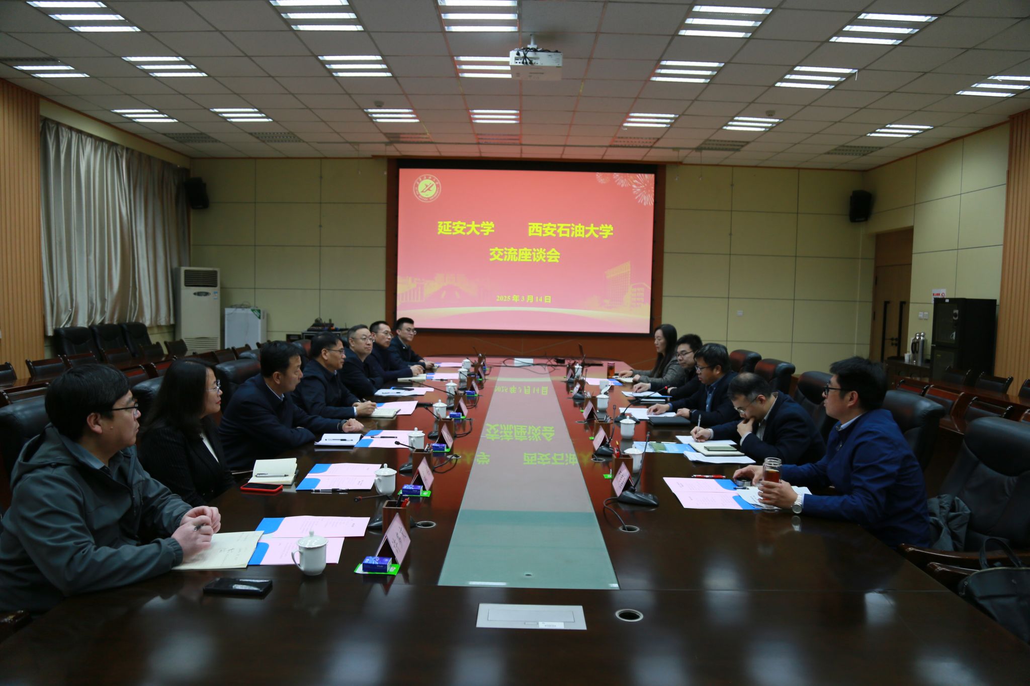 3月14日下午,延安大学党委委员、副校长吕磊一行来校调研交流。校党委委员、副校长张骁勇主持交流座谈会。
