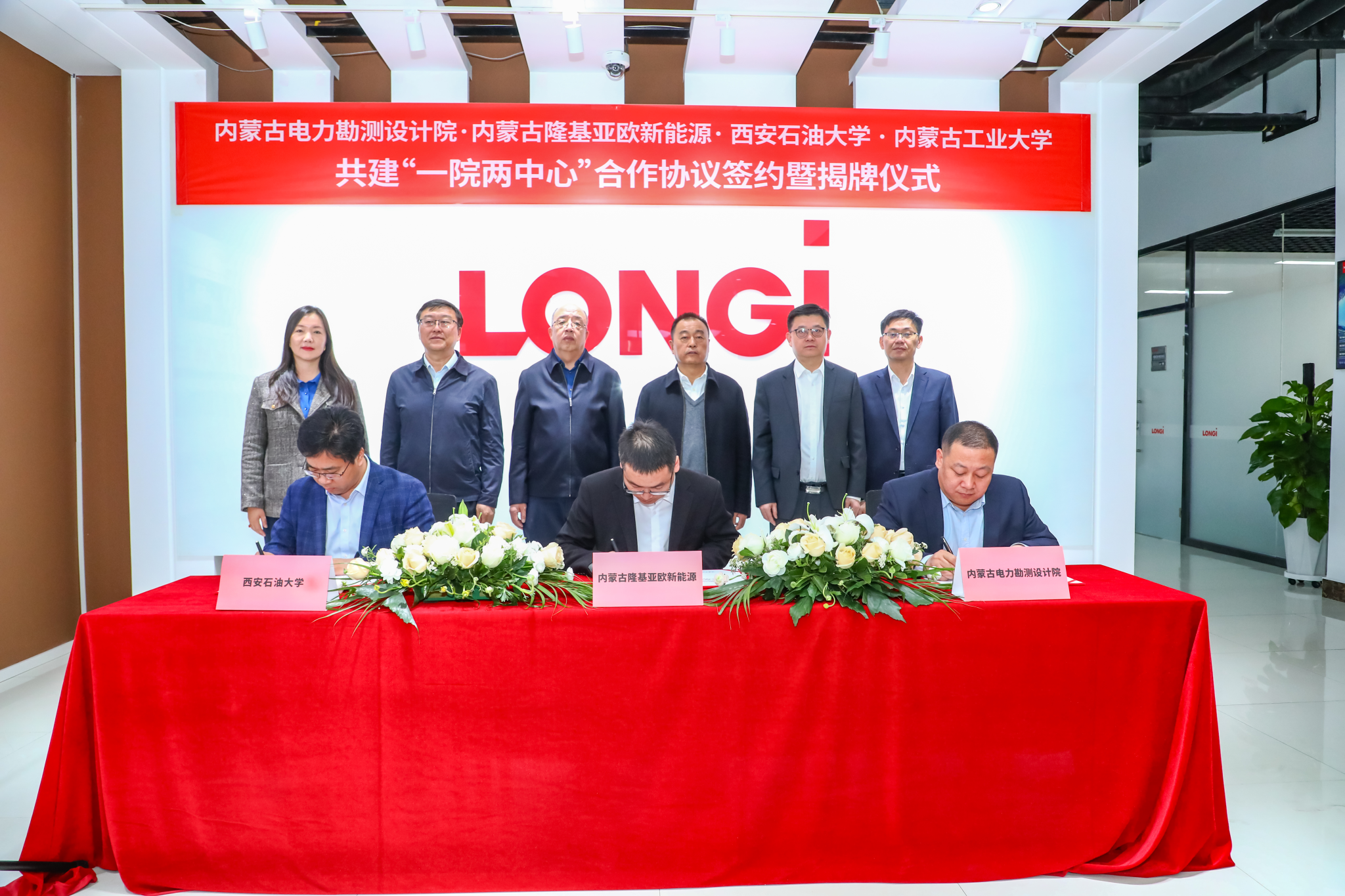 随后,程永清一行来到内蒙古隆基亚欧总部,应邀参加了“内蒙古电力勘测设计院·内蒙古隆基亚欧新能源·beat365英国官方网站·内蒙古工业大学共建‘一院两中心’合作协议签约暨揭牌仪式”。
