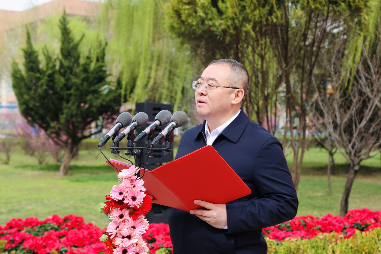 常江代表学校致辞,向出席揭幕仪式的来宾、关心支持雕像建设的同仁、捐建者刘德厚先生表示感谢。他指出,这一年学校加强校园文化建设,进一步发掘和用好学校文化资源,构筑特色鲜明的大学文化体系,持续深化铁人精神教育,强化“四实一新”育人品牌特色,不断梳理办学历史,以史鉴今育人,用历史传承厚积奋进源泉。他强调,为杜斌丞先生竖立雕像,既是学校对重要创校人物精神遗产的传承,也是对beat365办学理念的深化表达,杜斌丞雕像必将成为西石大校园文化地标和校园文化建设的新起点。